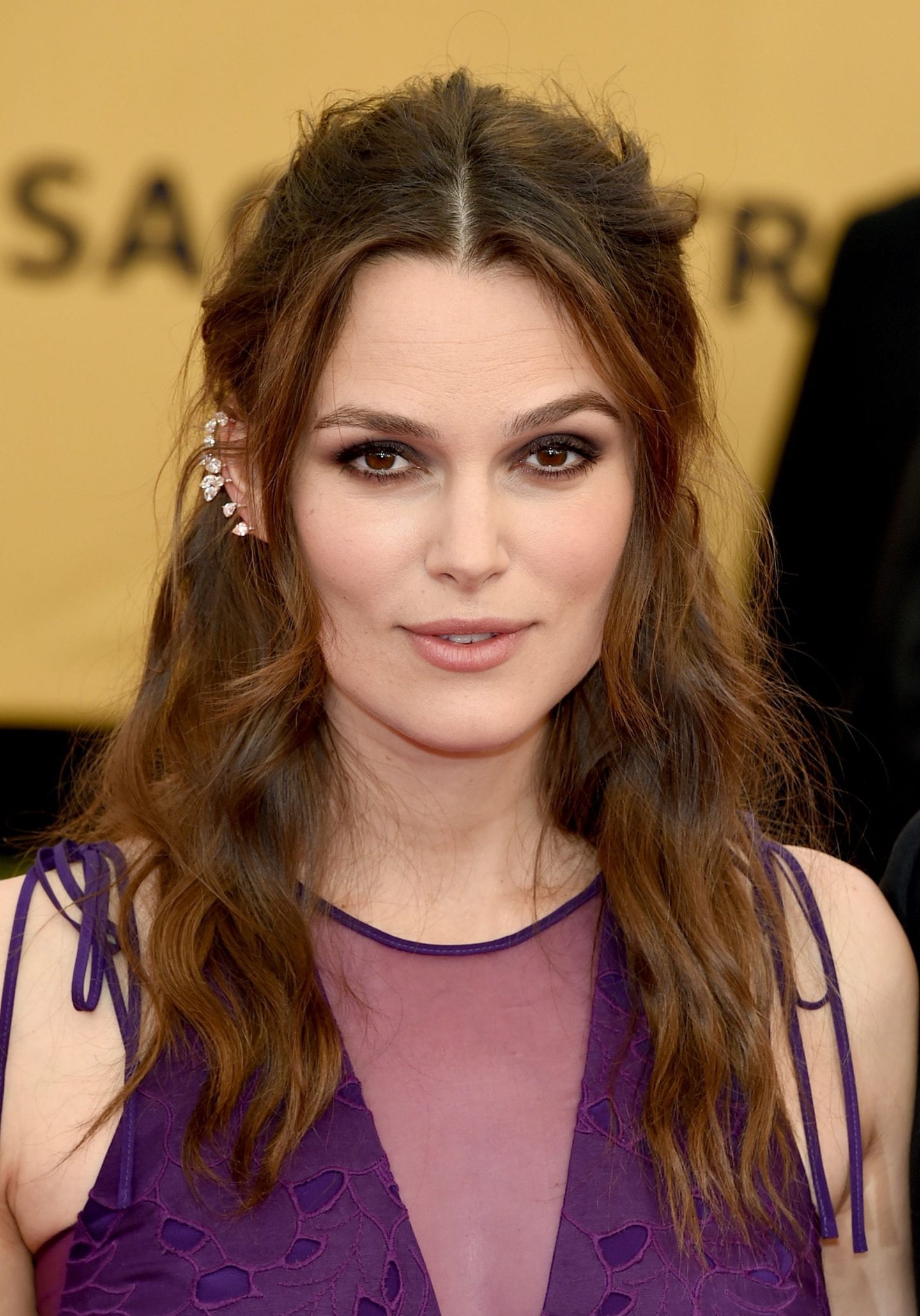 This style is an excellent way to keep sweaty bangs off of your forehead. Just french-braid your bangs along with any face-framing layers that usually end up stuck to your face. Wear it a bit messy like Drew Barrymore for a less formal style or go sleeker like Rita Ora. It works great for different lengths of hair, and you can wear it with any texture.