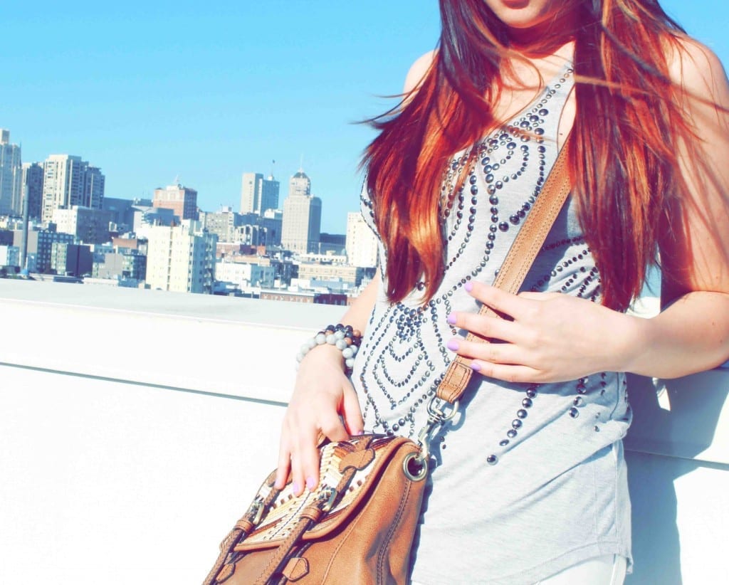 LOVE this outfit! that bag is adorbs 🙂 & you have great hair my dear!! xo