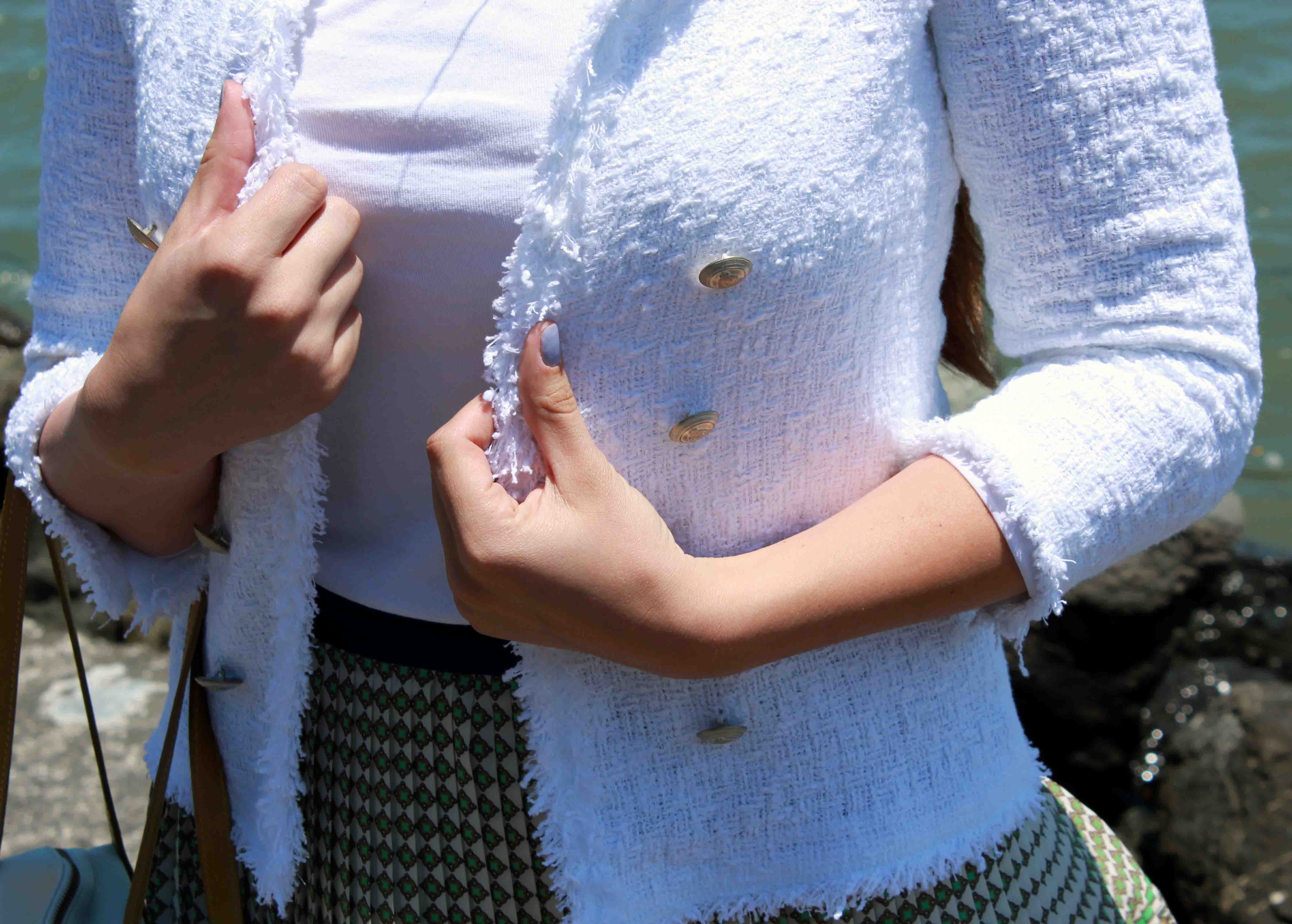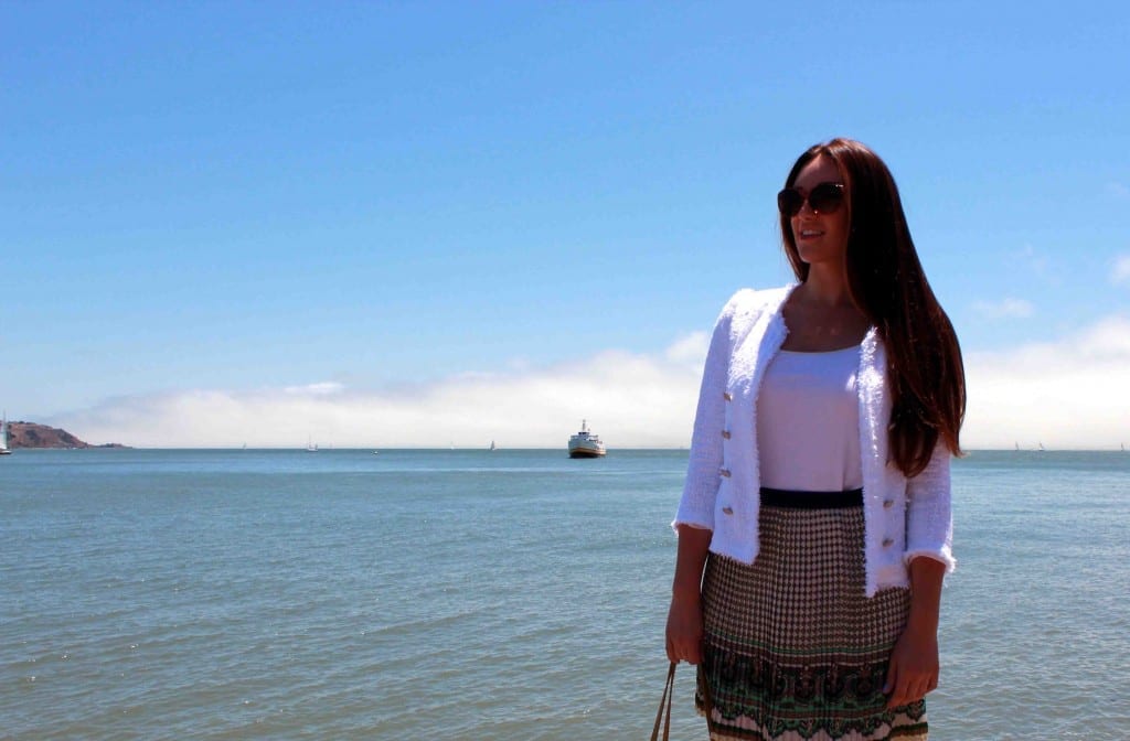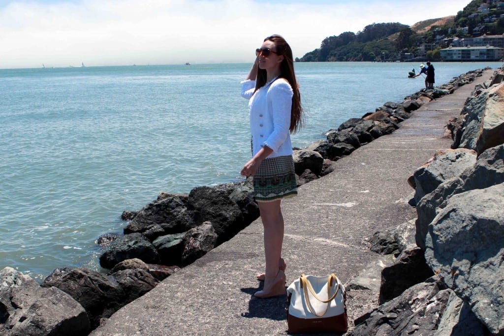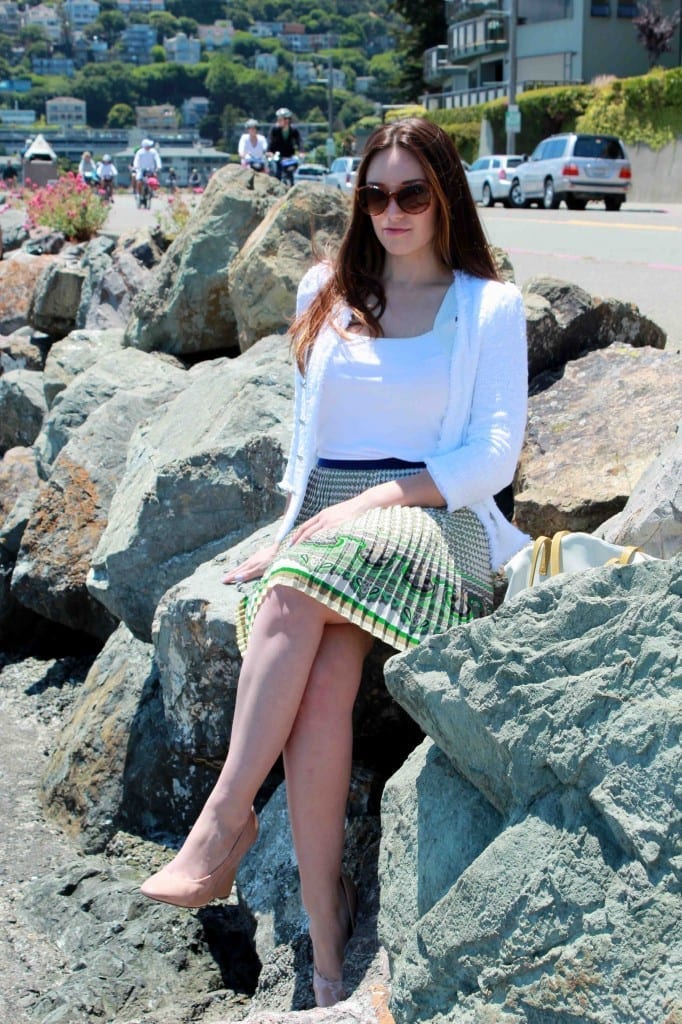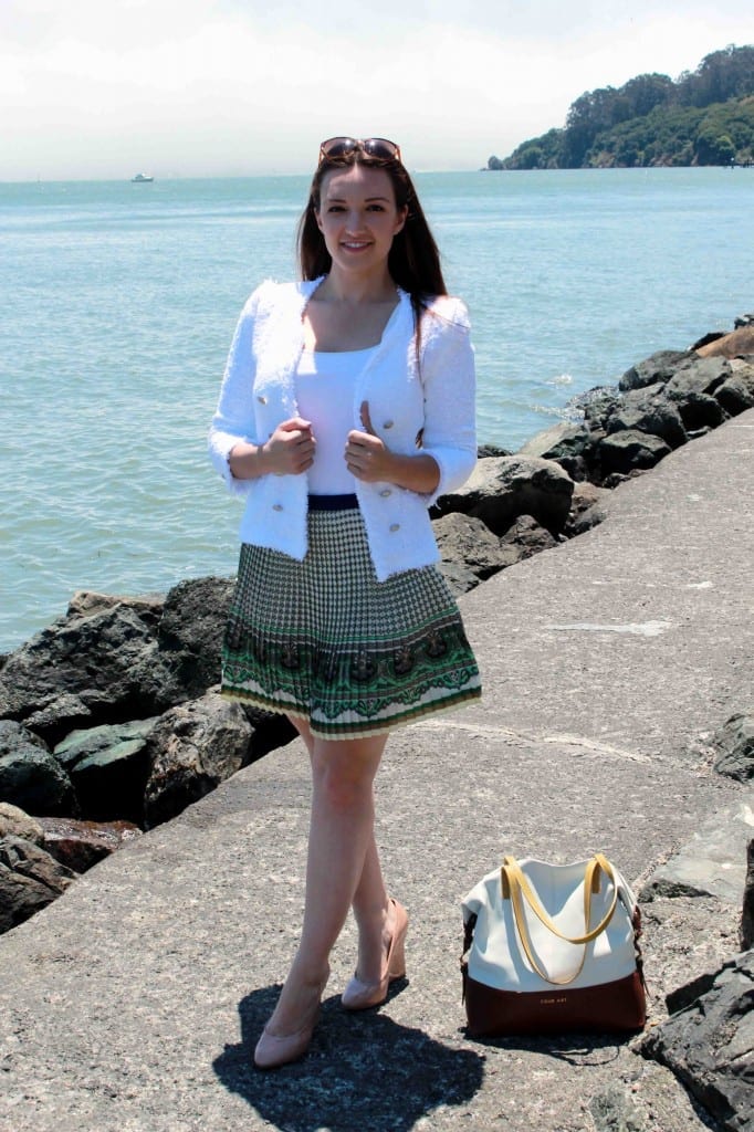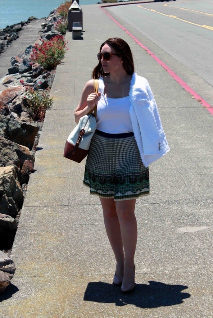 There is nothing more fun than a relaxing weekend brunch where you can sit back, relax, and people-watch (my favorite!). This weekend’s brunch was a Father’s Day celebration so I wanted to dress up a bit more since I was catching up with my family whom I don’t get to see as often as I’d like. I’ve been loving these Vera Wang Lavender wedges because there color is a perfect ‘nude’ color that works well with my complexion to give an illusion of longer legs. We had brunch in Sausalito, California by the water so I needed a light jacket to keep me warm when the ocean breeze rolled in. This Zara jacket has a very Coco Chanel look to it and paired nicely with the printed and pleated skirt for a pulled together and sophisticated Father’s Day brunch look. How was your Father’s Day?