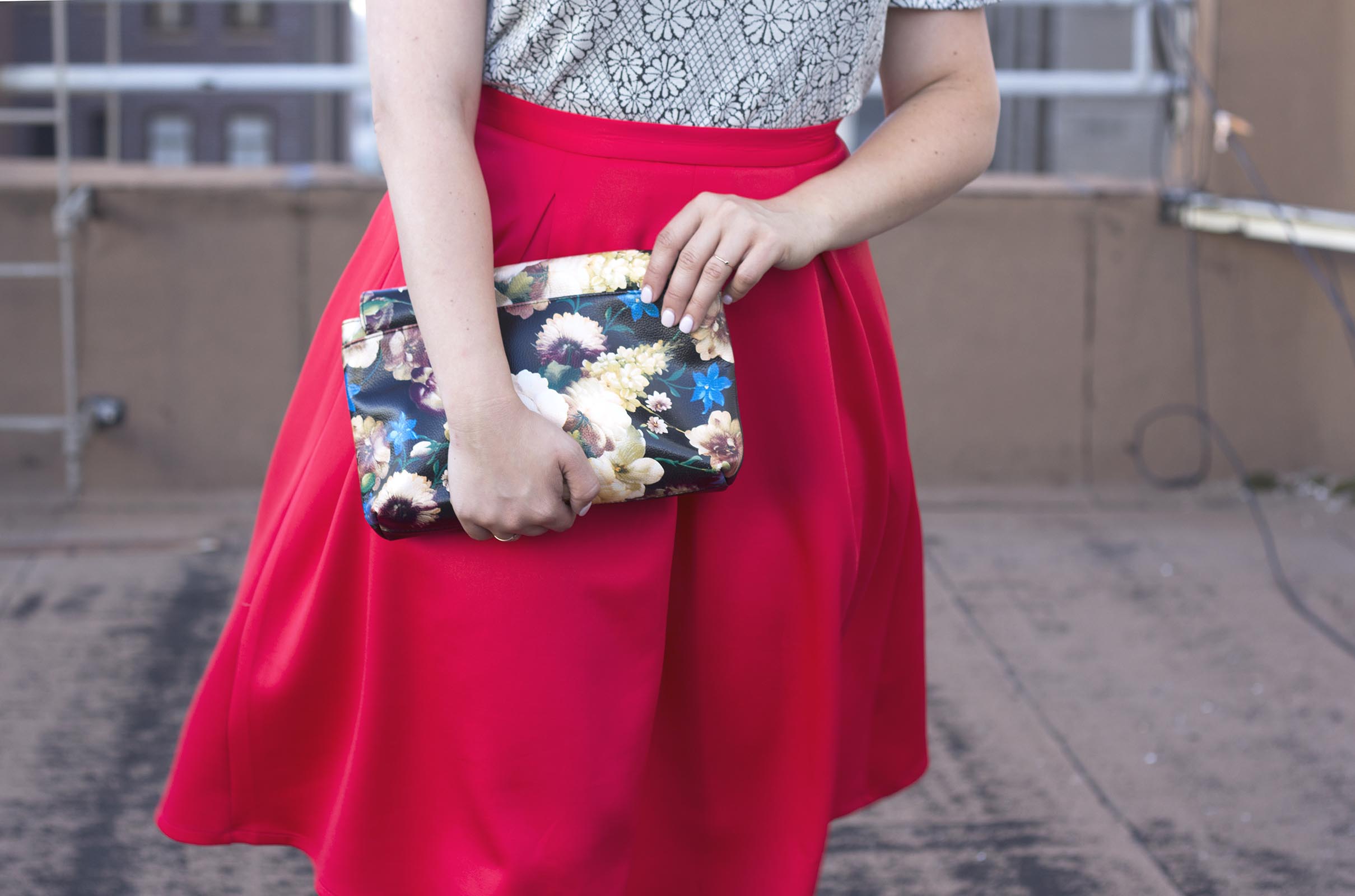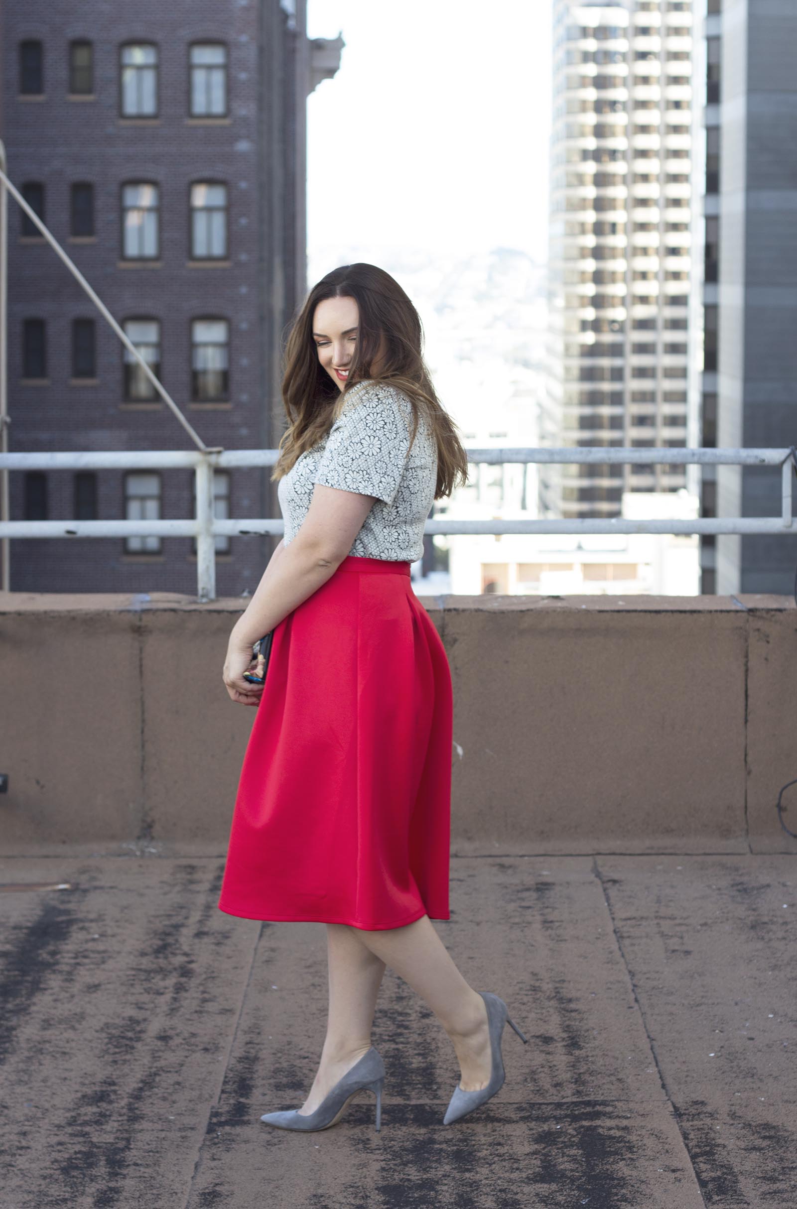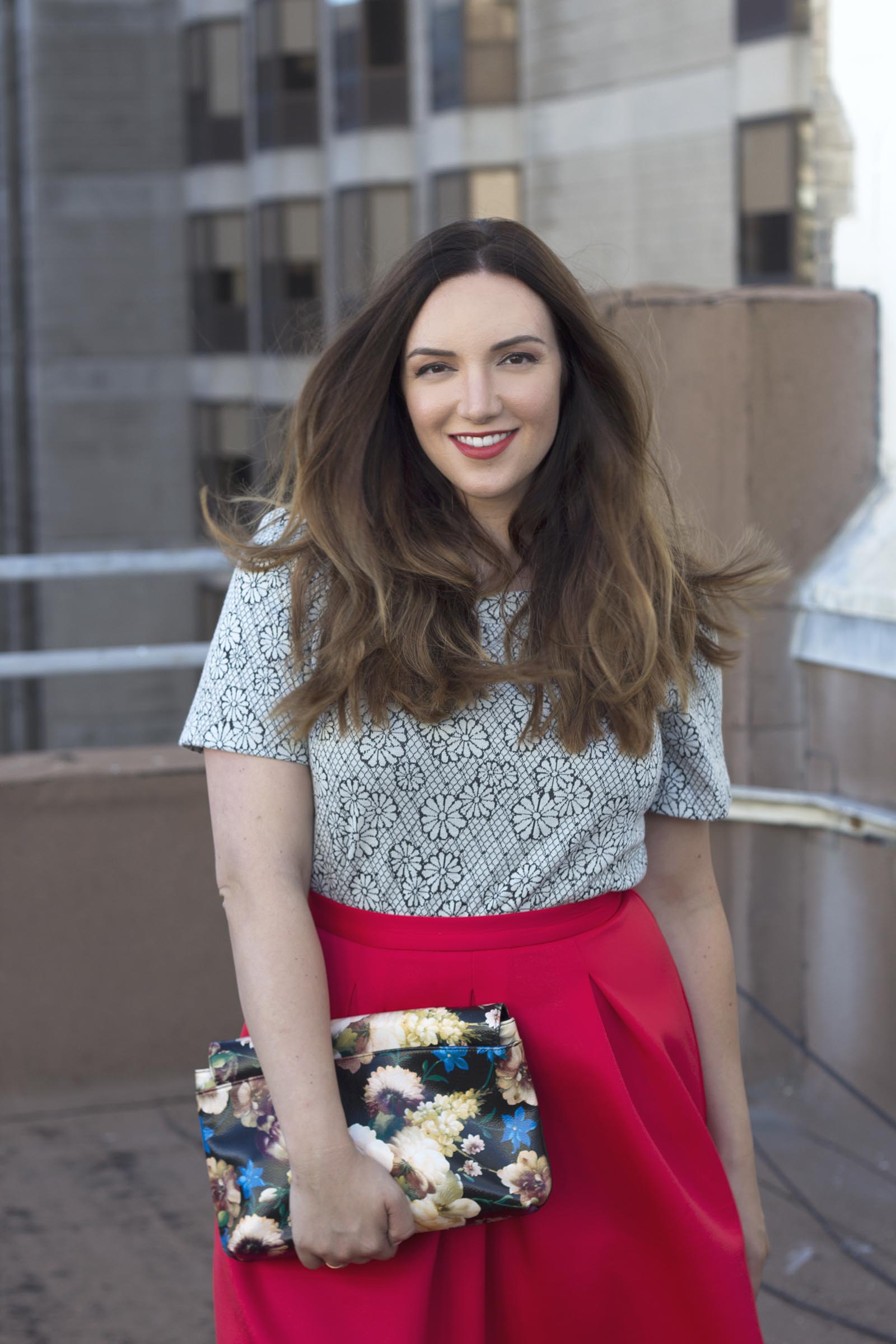 I met up with one of my girlfriends after a morning of meetings for lunch this week and…this is what I wore! I don’t wear red often but its such a gorgeous and powerful color and I especially like it paired with grey for a bright and dull mix. To go from meetings to lunch, I added a bit of red lipstick and took my clutch out of my larger laptop tote. It’s those small and easy tweaks that can take your outfit from AM to PM.