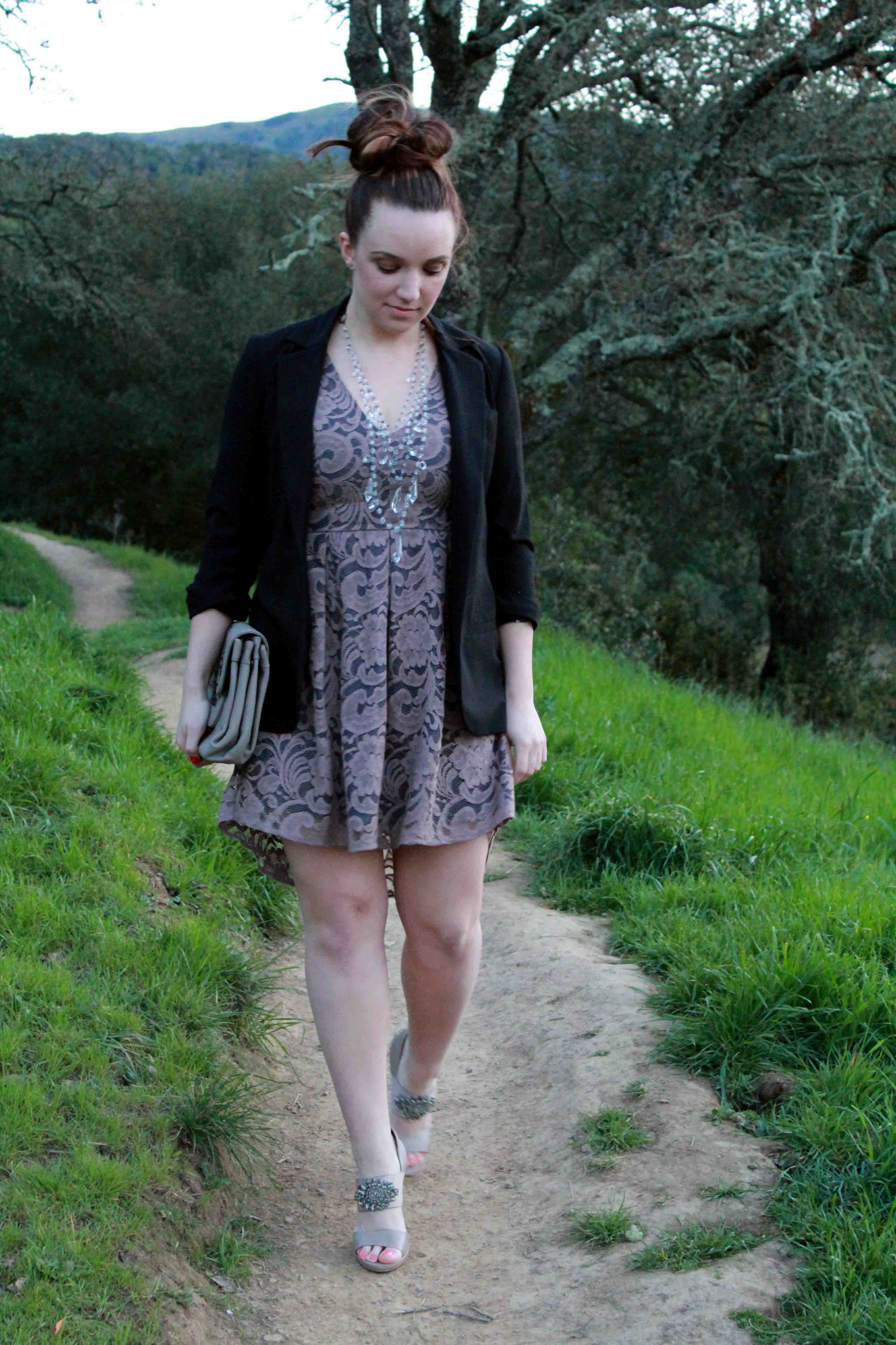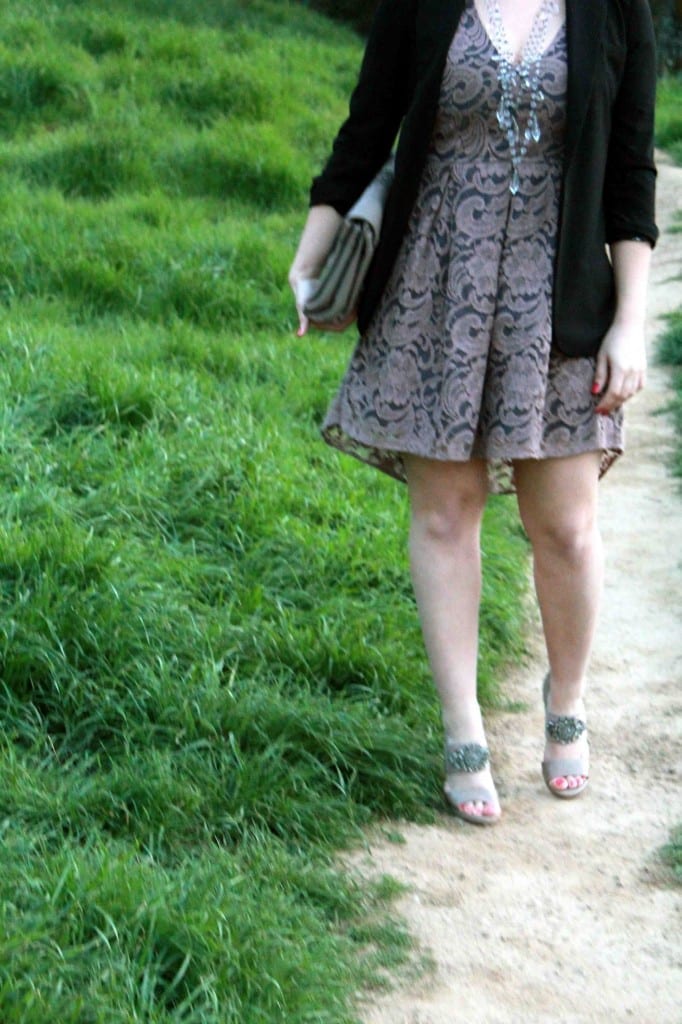 Its always hard to come back to the work week when you just had a great weekend.  I was lucky enough to take a little weekend getaway down to Los Angeles with two of my best friends!  We spent our mornings brunching at TwentySix Beach (the snow crab scramble was probably one of my top ten breakfasts ever!), got artsy at Bergamot Station, and celebrated Paris’ birthday at the Huntley.  I wore this fun, lacy dress with my absolutely favorite chandelier necklace that is completely over the top but I love it, so…whatever! 🙂