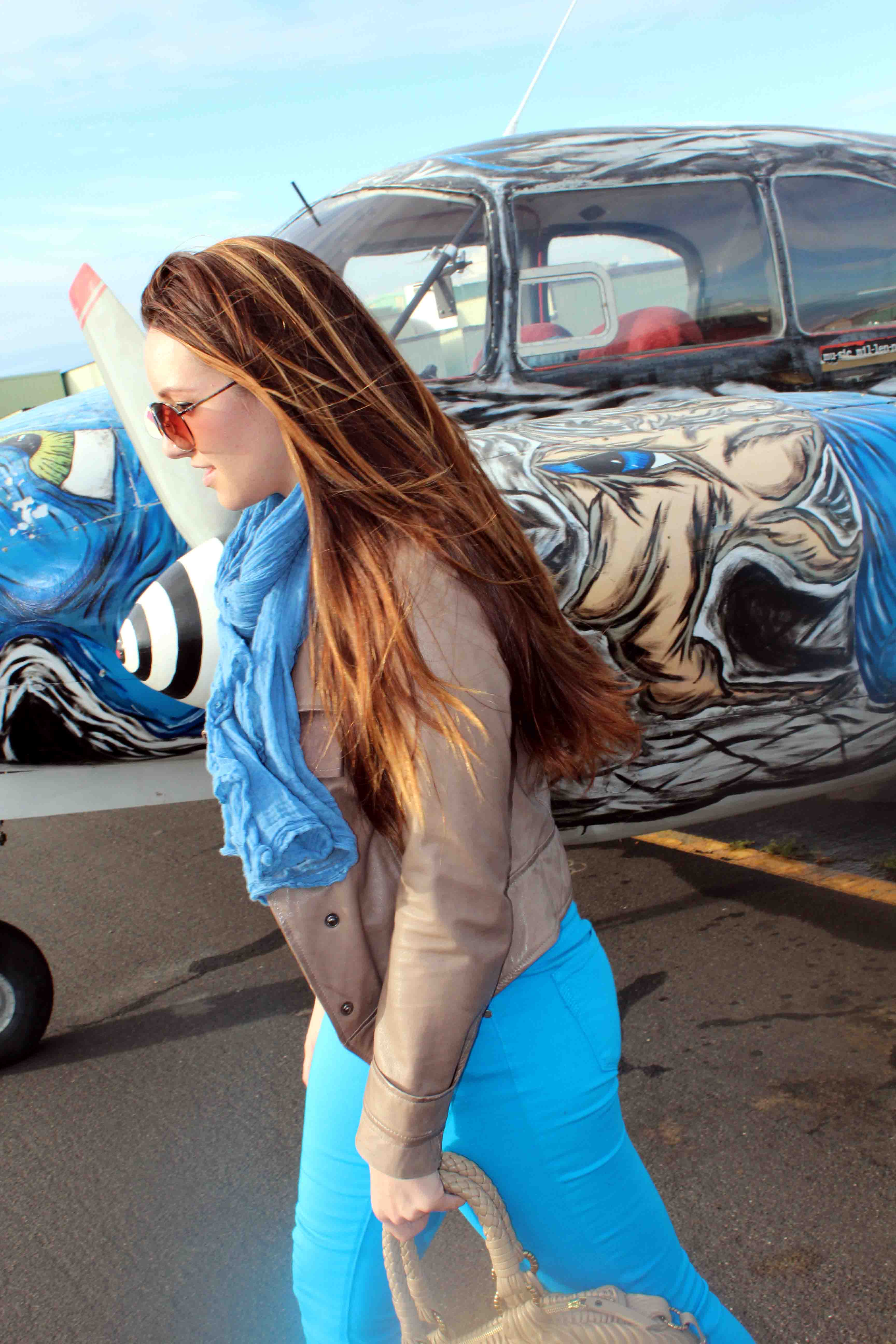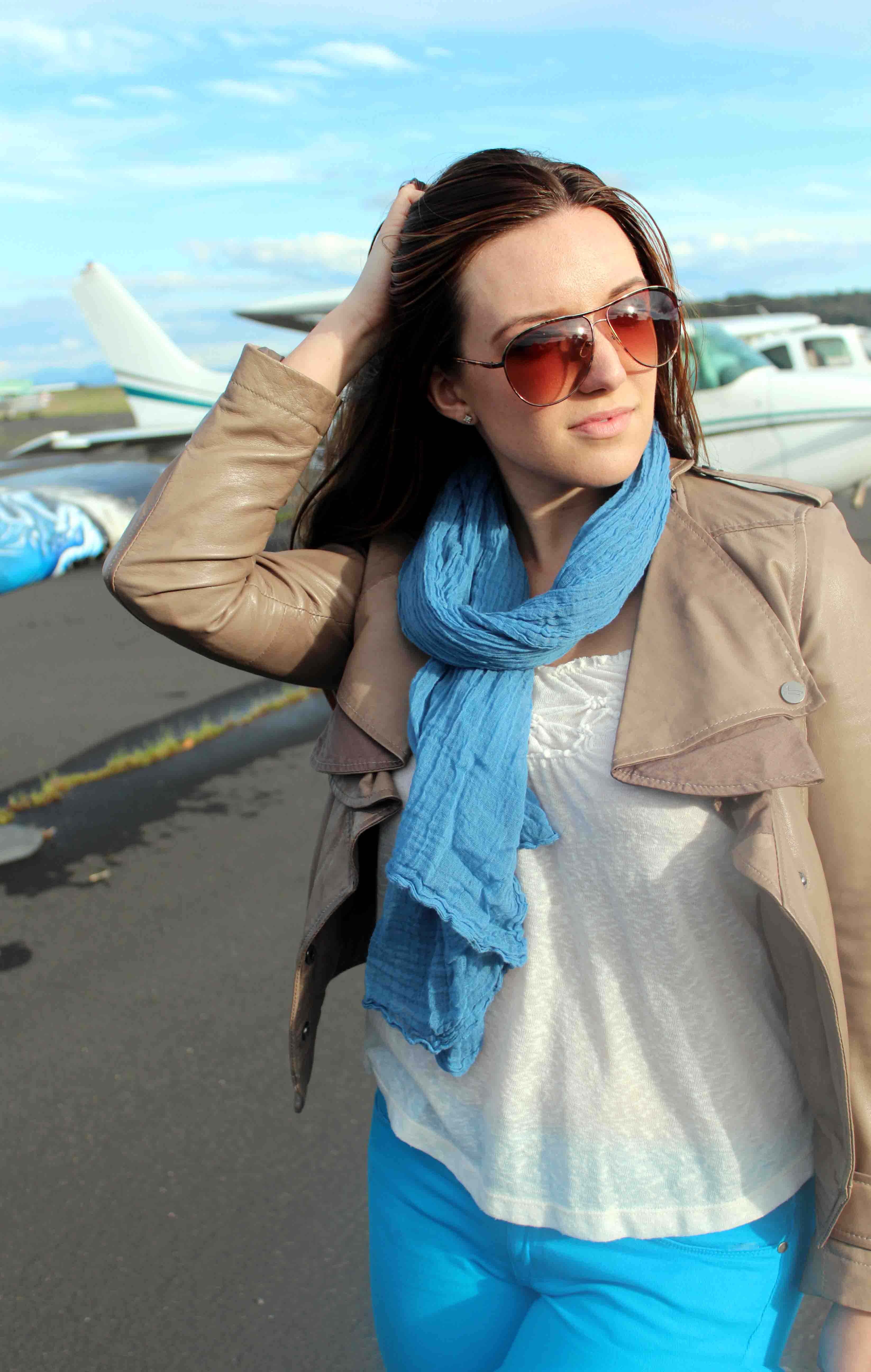 Jacket: William Rast // Tank: Majestic // Jeans: Paige Premium Denim // Scarf: Max & Co., similar here // Shoes: Elie Tahari // Bag: Elie Tahari // Sunglasses: TopShop