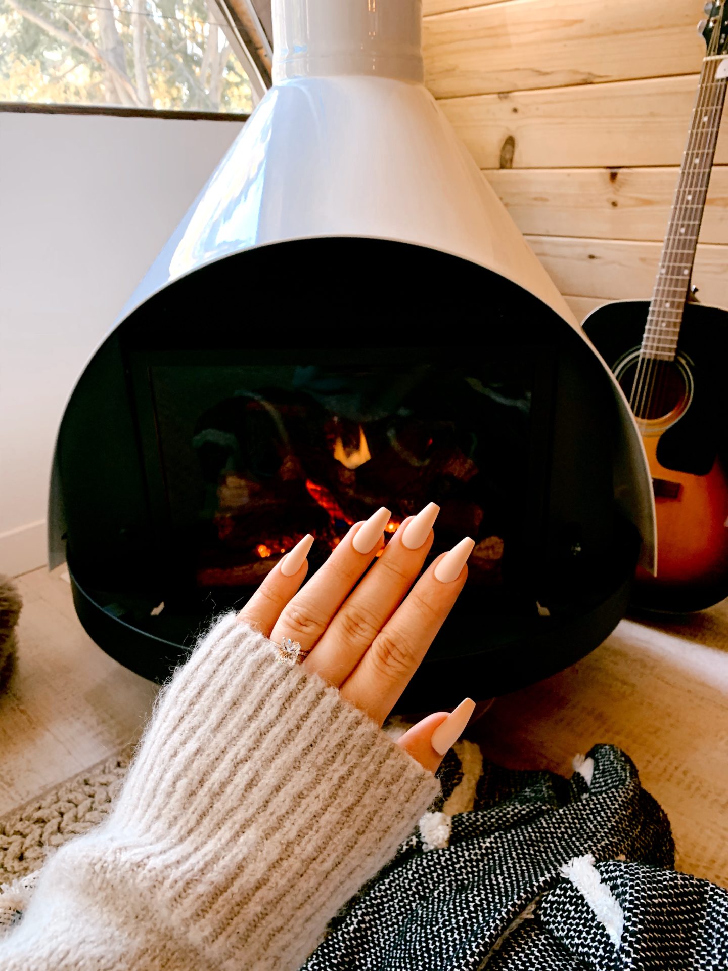 long matte coffin nails nude |Skeleton Makeup Tutorial by popular San Francisco beauty blog, Just Add glam: image of a woman with cashmere colored nails.