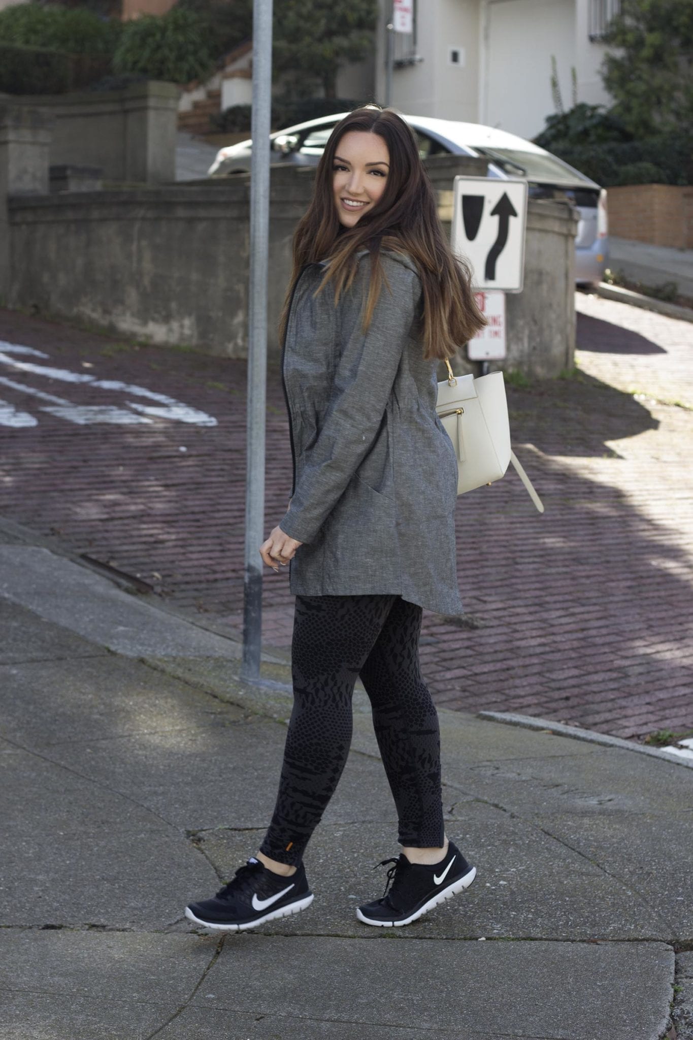 Outfit – Sweatshirt: Lucy // Jacket: Lucy // Leggings: Lucy // Shoes: Nike // Bag: Celine