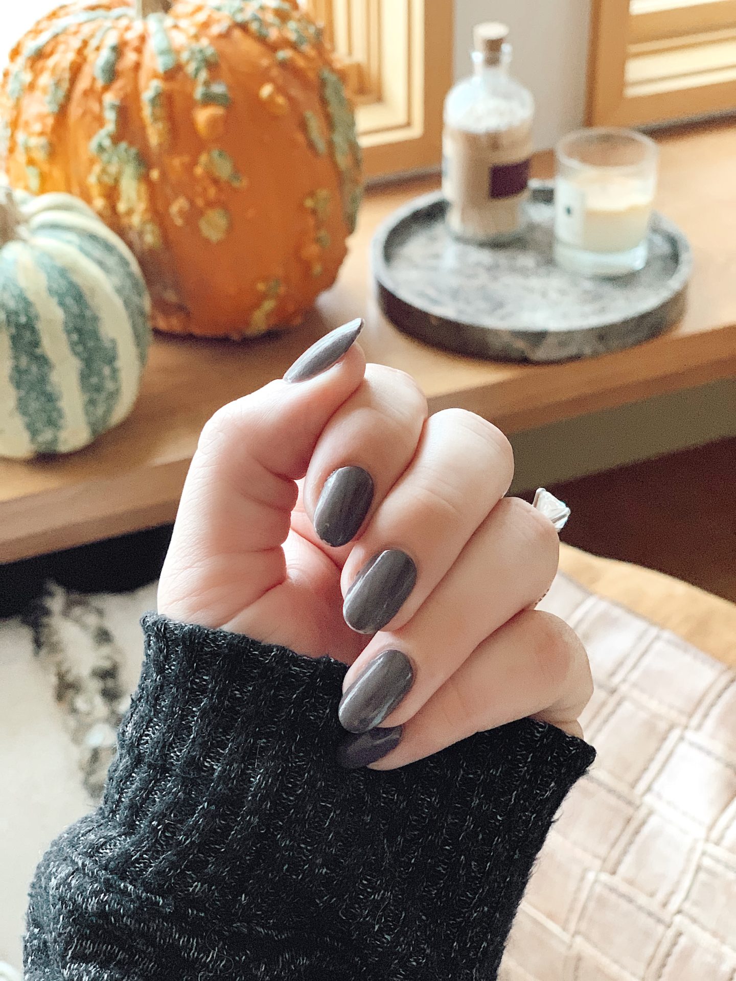You guys know I’m a HUGE fan of press on nails–and love these ones for fall. I tend to go for darker colors in the fall like this vampy purple-grey color. I ordered 3 boxes to have on hand because these will go fast, I know it!