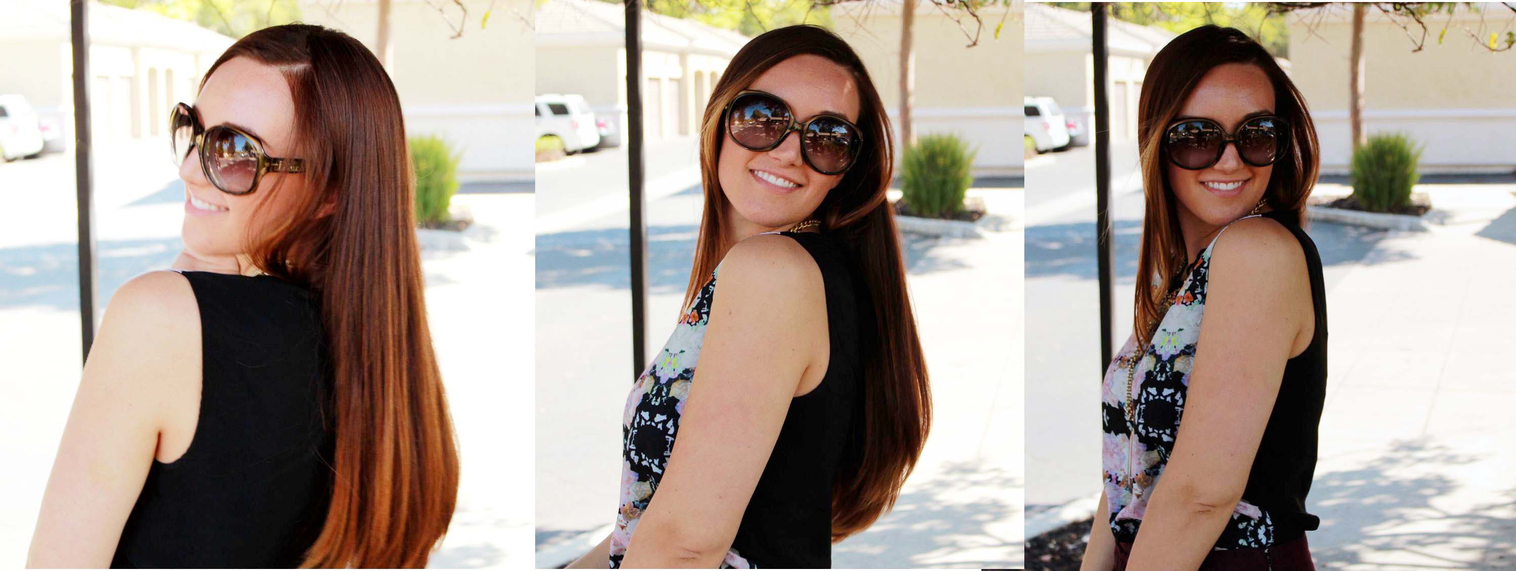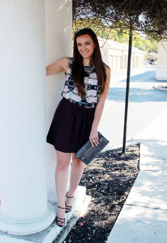 Top: H&M, similar styles by ASOS, Paul Smith, and MANGO // Skirt: JCrew // Heels: Dolce & Gabbana // Necklace: TJ Maxx // Long Necklace: Stella & Dot // Bag: Alexandra Satine // Ring: unknown, similar here by Amrita Singh  // Sunglasses: Dior // Nails: Essie Prima Ballerina