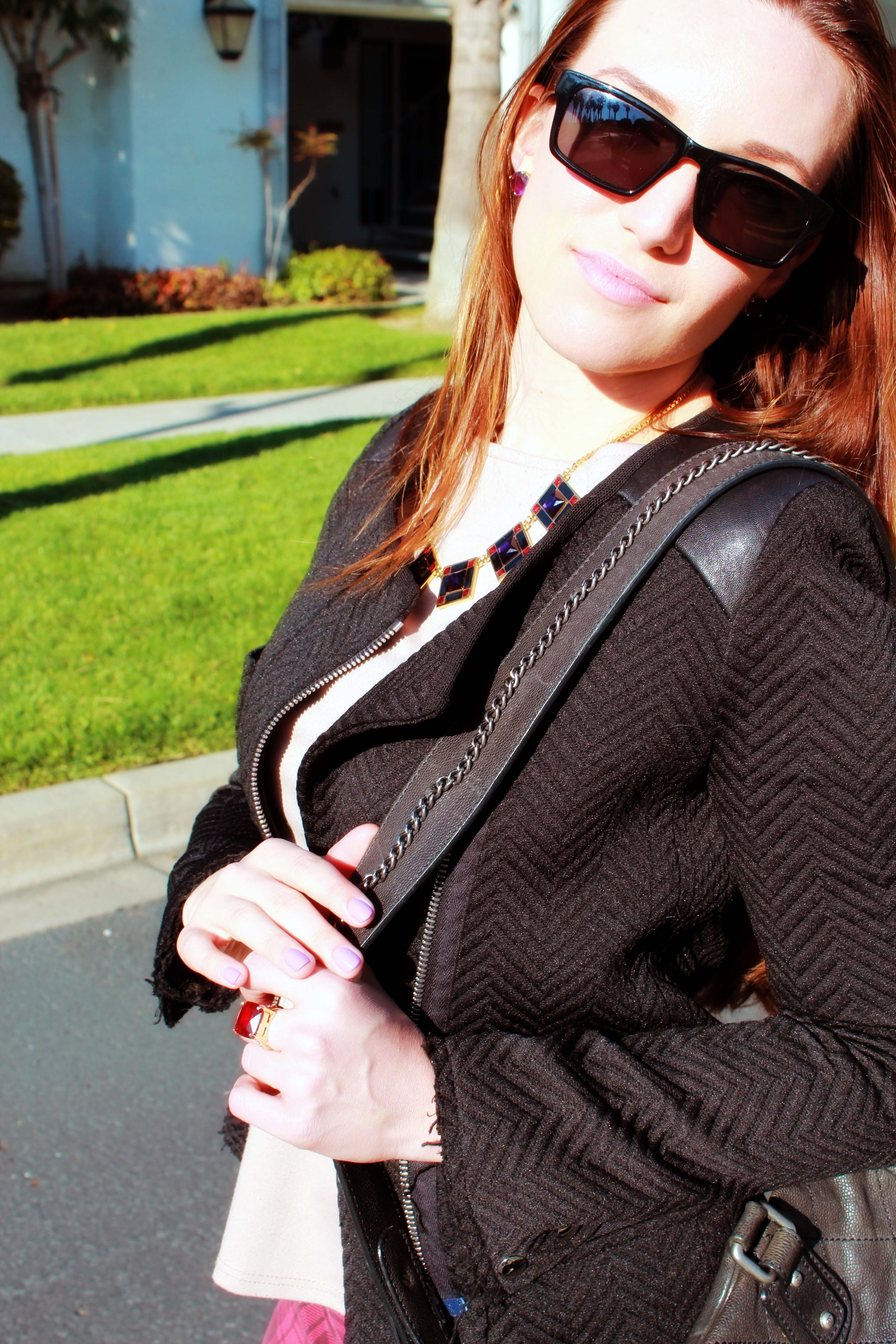 Loving the pants! The zipper detail in the back is awesome I like the pairing of the lighter top and darker jacket… AND if you need to leave town I’ll be happy to bag sit 😉