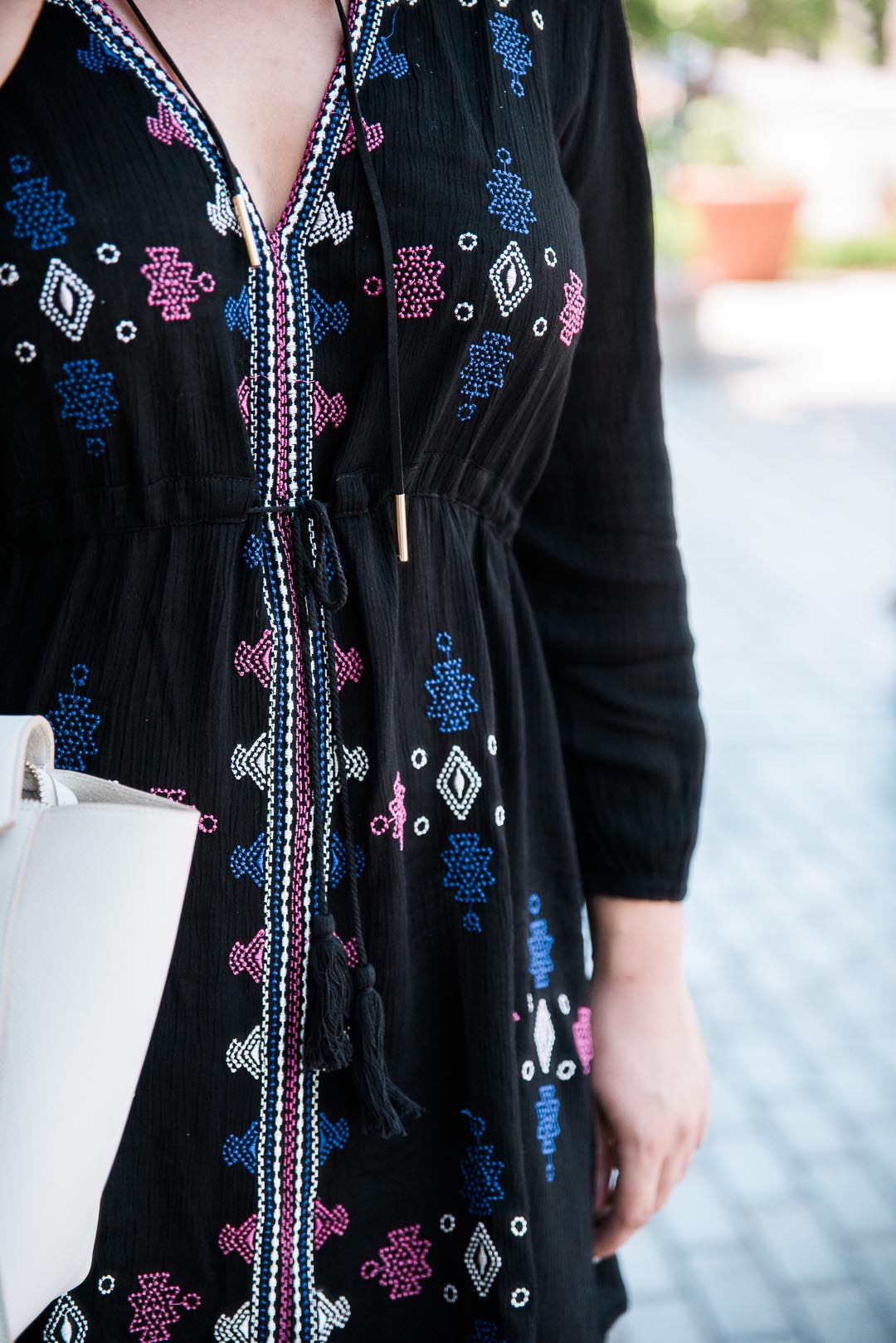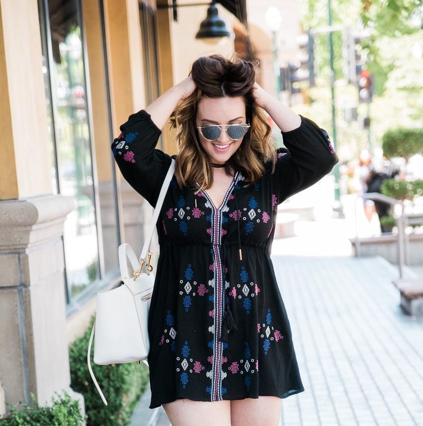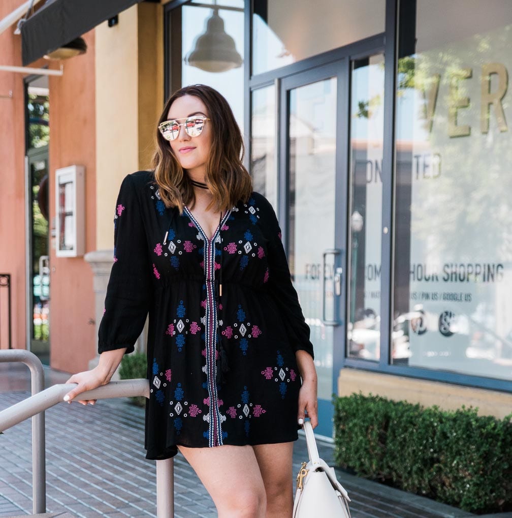 Boho embroidered style dresses have been so popular this summer and I’m so obsessed with them. I love how tossing on a dress (instead of a top and bottom) makes it so easy to quickly get dressed and style with accessories. And at $26, you’ve just increased your summer vacation budget–we’re planning on Greece, I think?? Let me know your suggestions!