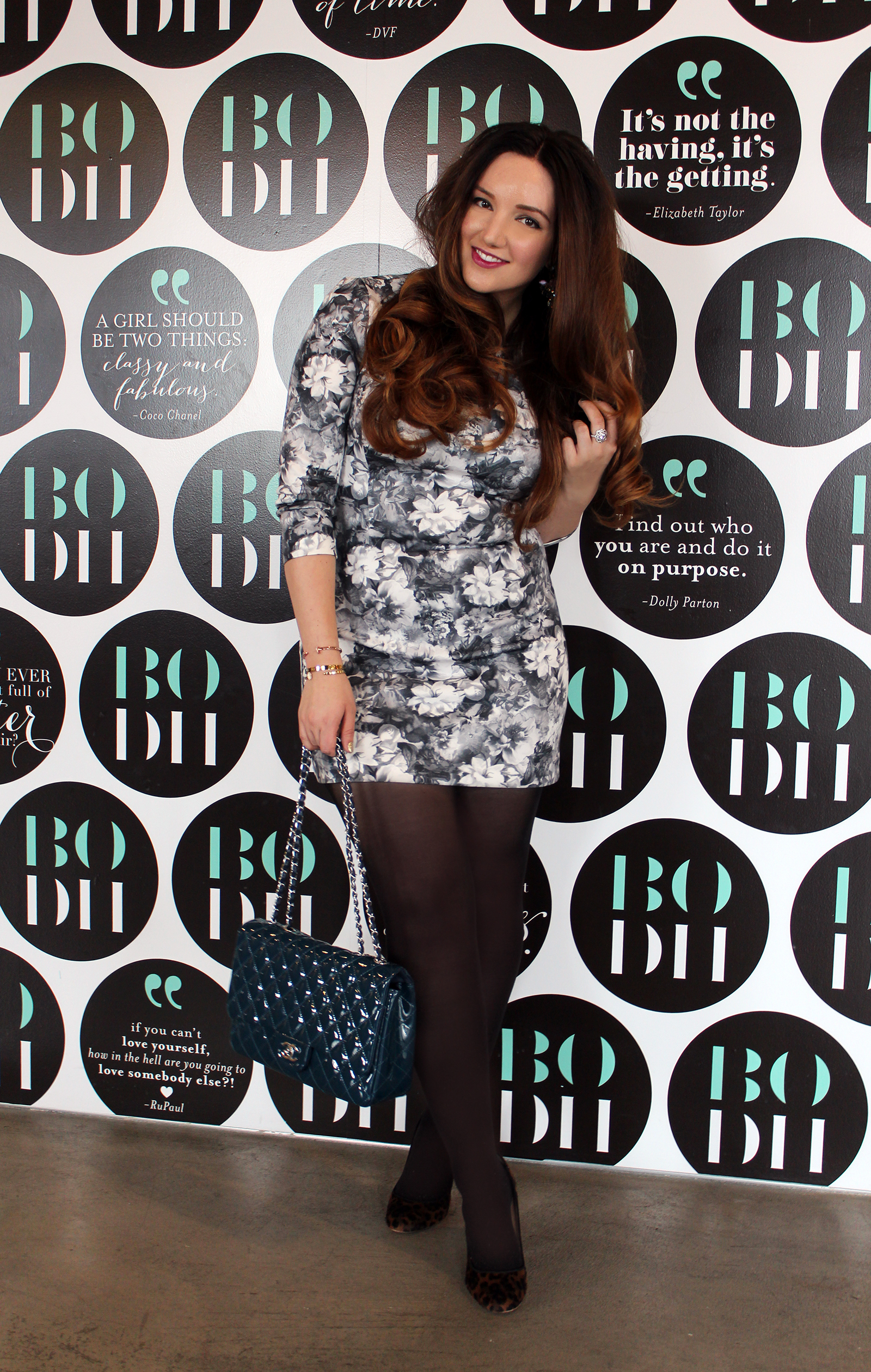 We headed to the salon before a shopping trip to the boutiques in the new Cosmopolitan Hotel and Casino and I wore a black and white floral printed dress for the occasion. I knew I was going for big big big volume and curls for my hair so wanted a slimmer fit dress to counter-balance the fullness. This dress is also a bit on the short side so I paired it with my favorite Wolford tights to balance out the short hemline. And to match my curls? I wore my JCrew Etta pumps in the gorgeous chocolate leopard print which is very complimentary to my hair color.