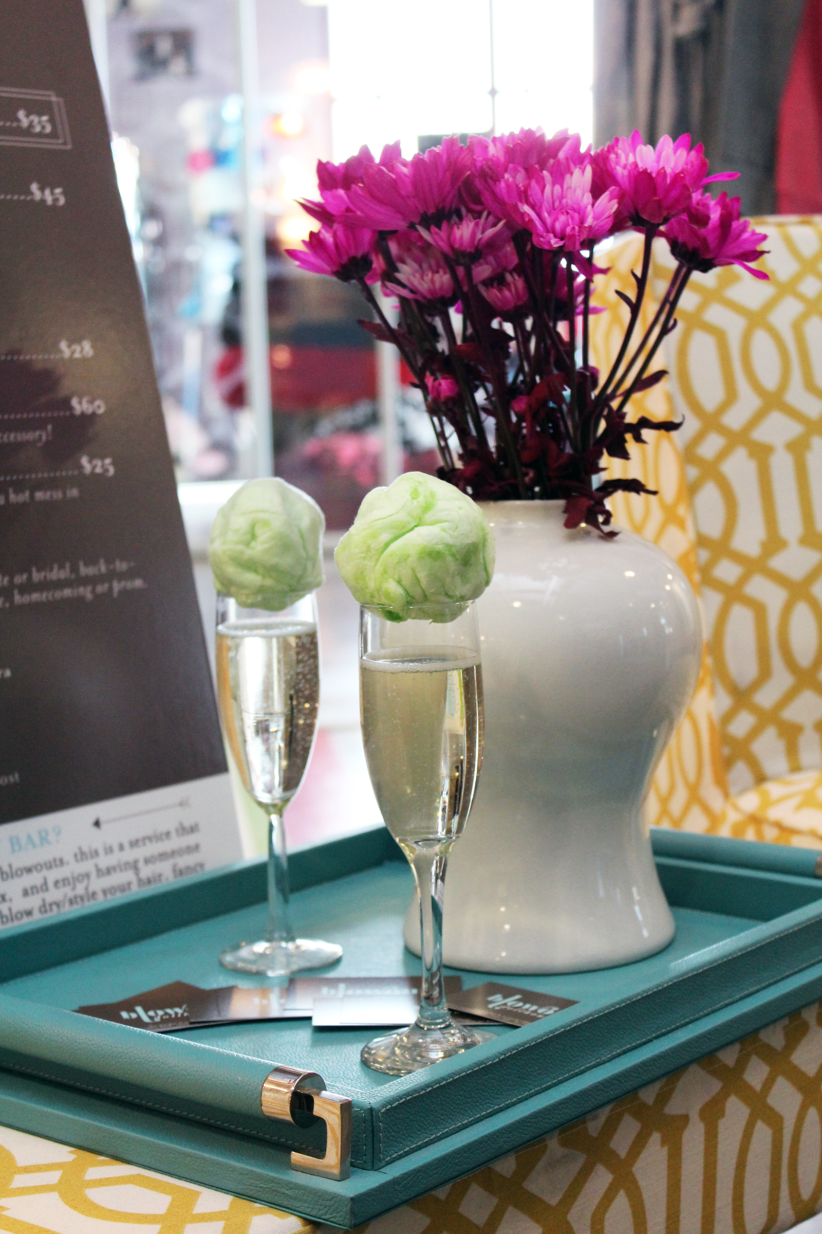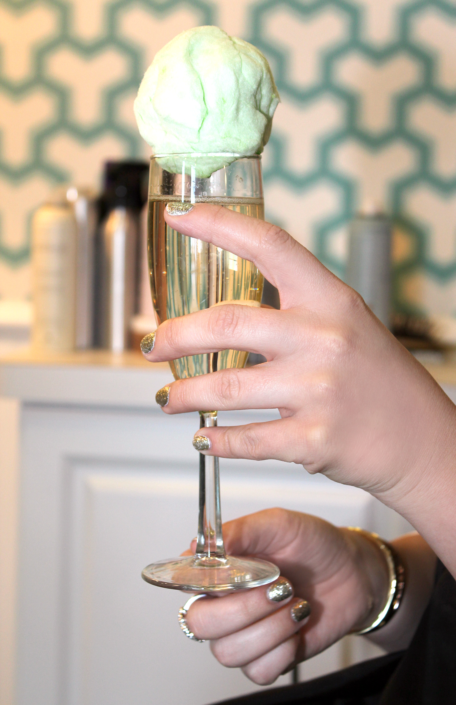What blowout salon experience would be complete without champagne? The salon’s signature drink–The Doll–is a glass of chilled champagne with a cotton candy topper. Push it down into the glass and watch it fizz!