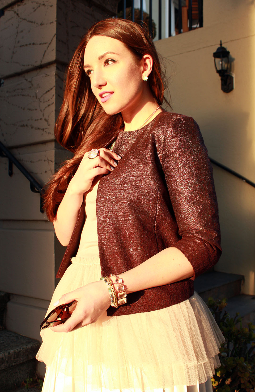 I love your jacket and ruffles! Such a gorgeous outfit and photos!