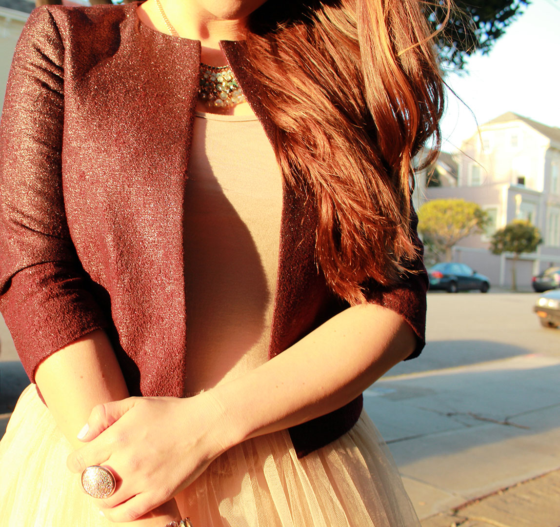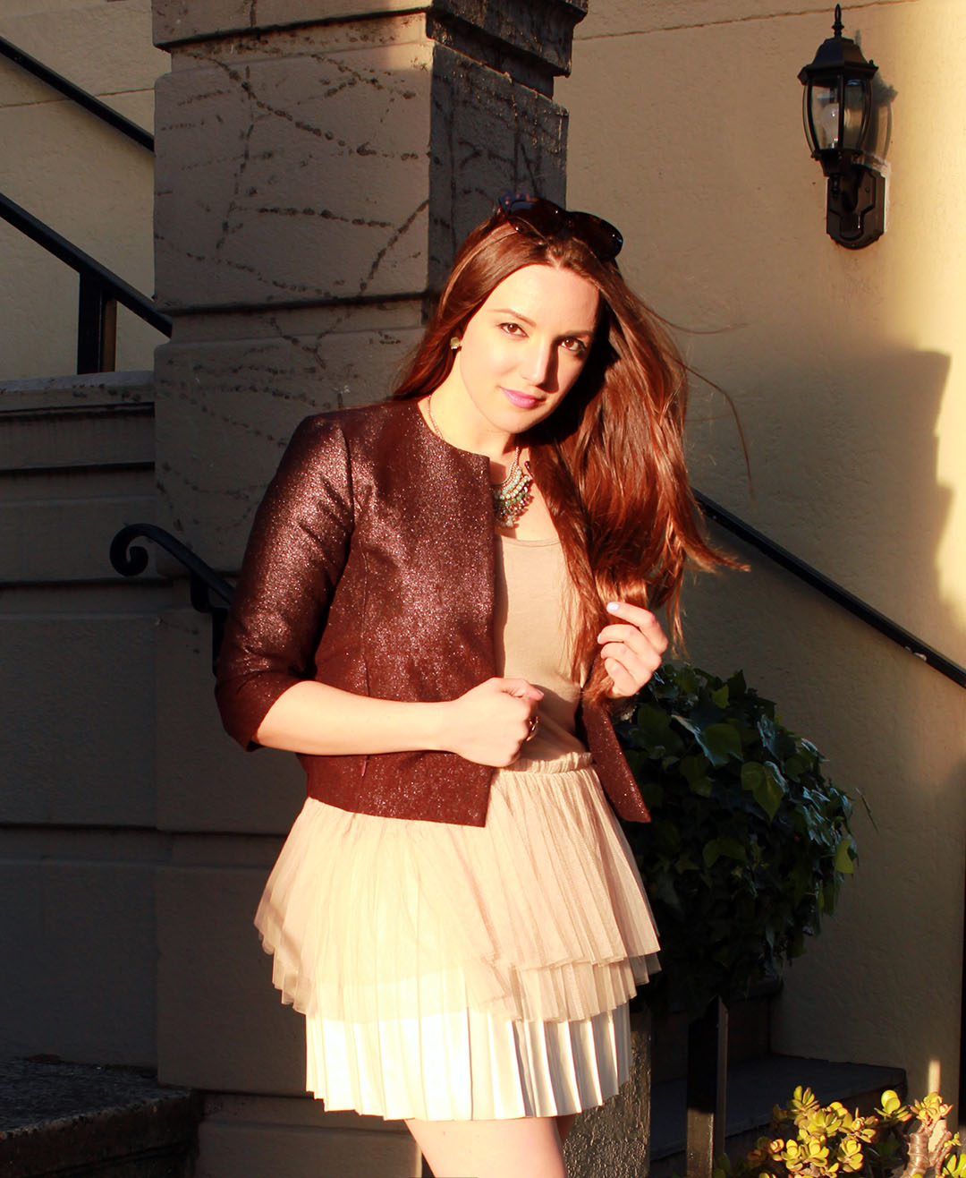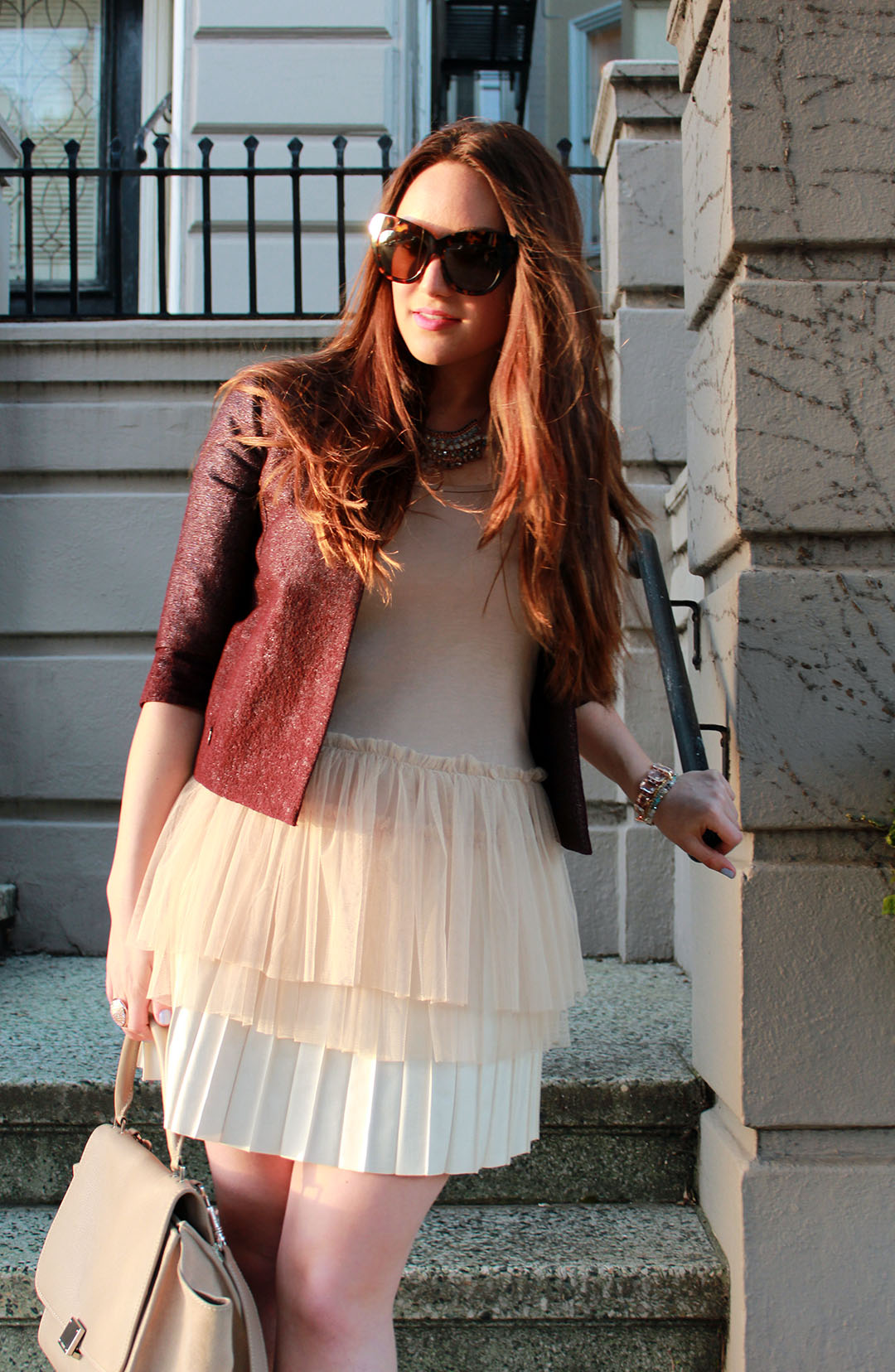 I love how the jacket looks over that dress! The layers and pleats are so cool!
