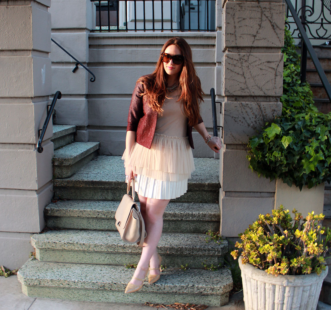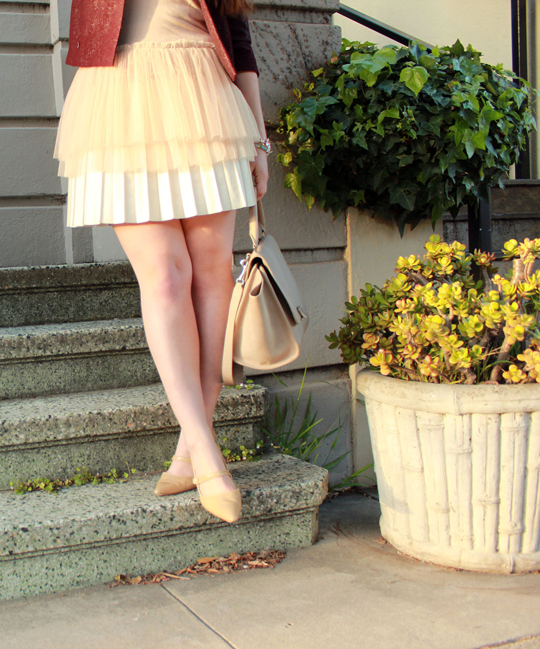Tulle Top: An’ge // Skirt: Hinge // Jacket: H&M // Shoes: Manolo Blahnik // Bag: Celine // Sunglasses: House of Harlow // Jewelry: c/o Capwell + Co // Nails: Essie Lilacism // Lips: Revlon Just Bitten in Passion