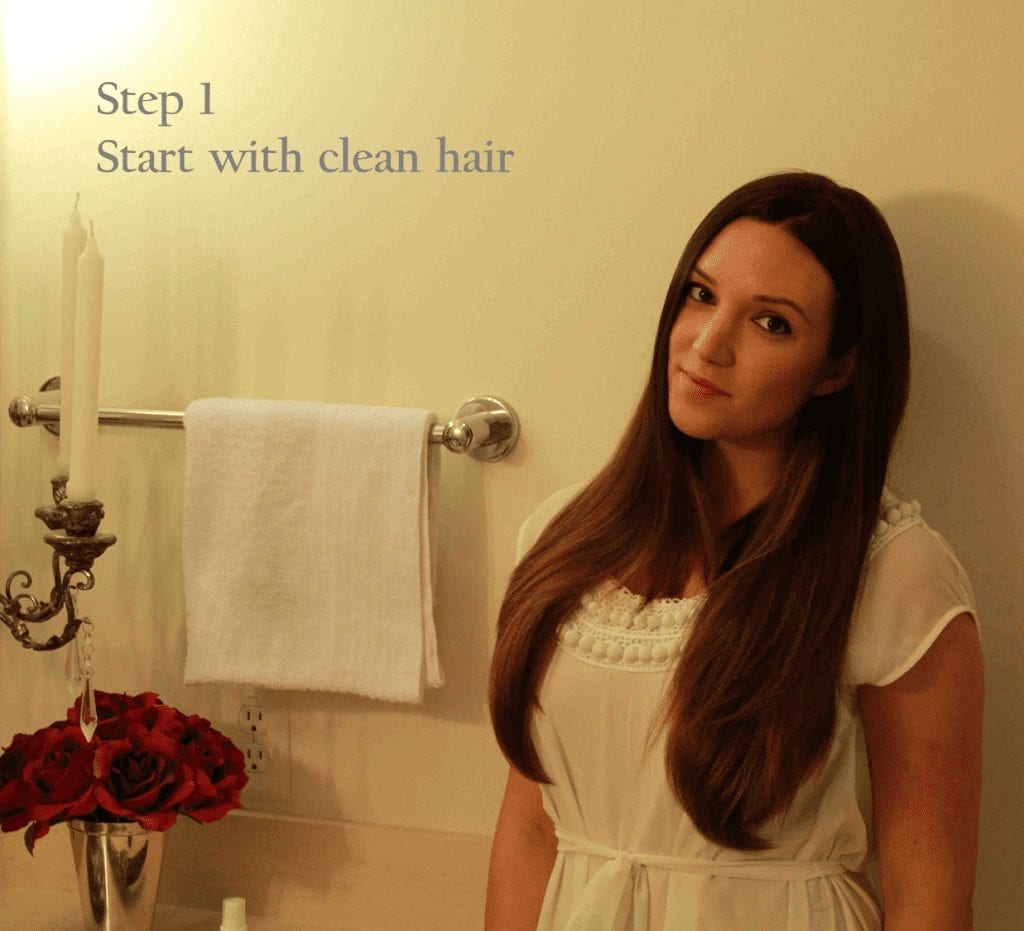 Step 1: Start with freshly washed, clean hair. I prepped my hair with a thorough shampooing, applied a few pumps of argan oil at the ends of my hair for moisture and dried my hair with a hair dryer. Since I like to get the mileage out of my curls, this is my most important step to help keep my bombshell curls looking fresh (that, and dry shampoo…)
