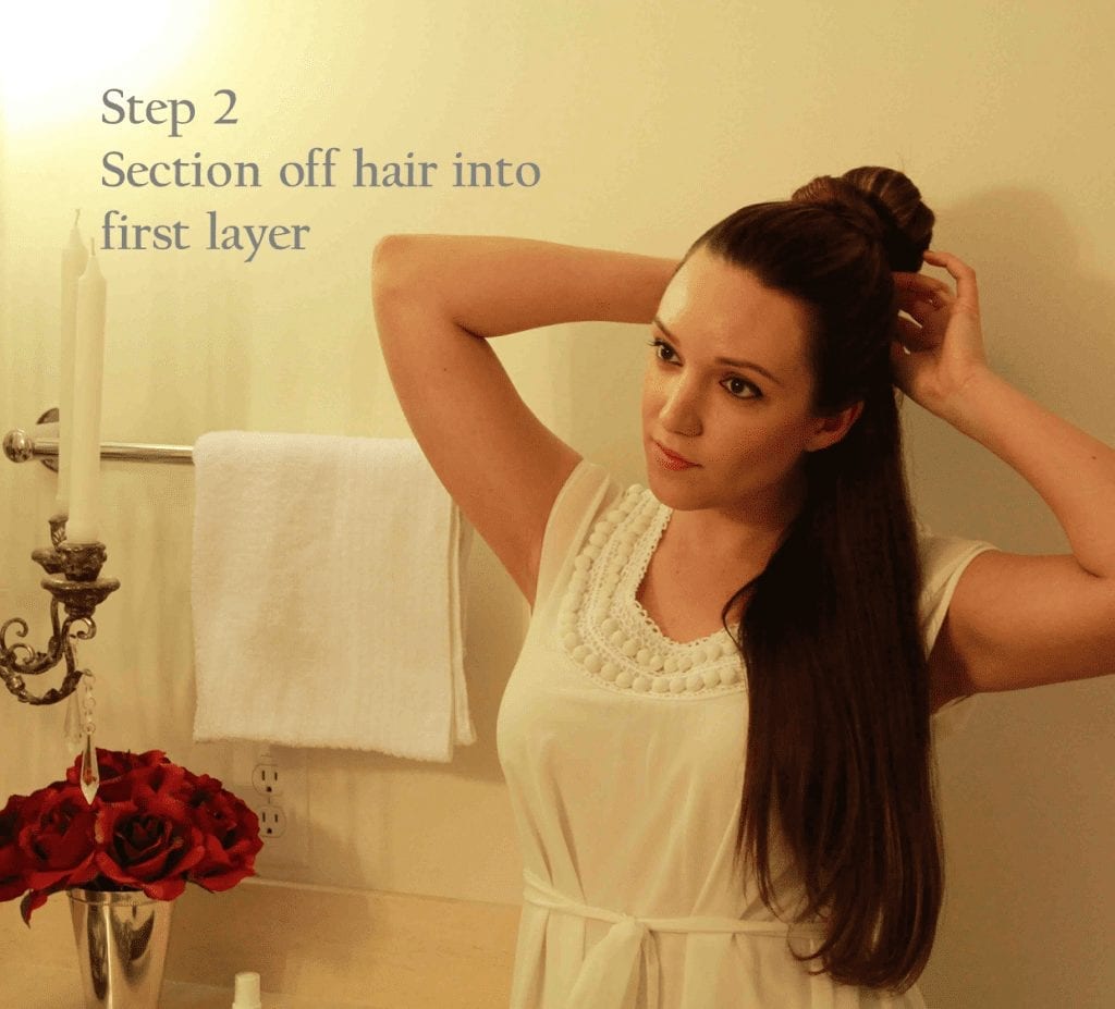 Step 2: Once hair is dry, section off the bottom layer to begin curling your hair. I have thick hair so I prefer using smaller, more manageable sections to work with.