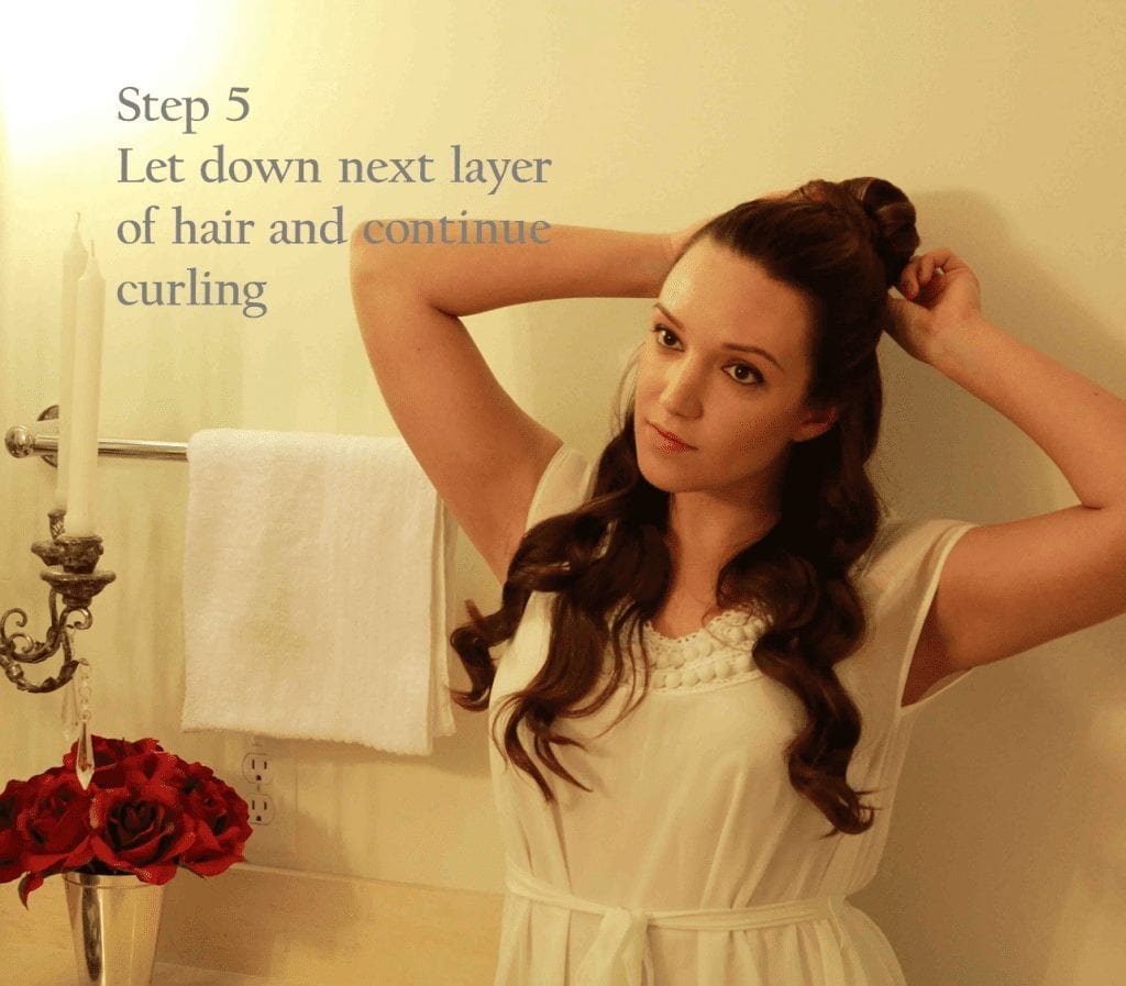 Step 4: Continue wrapping and curling pieces of hair until the entire layer is curled.