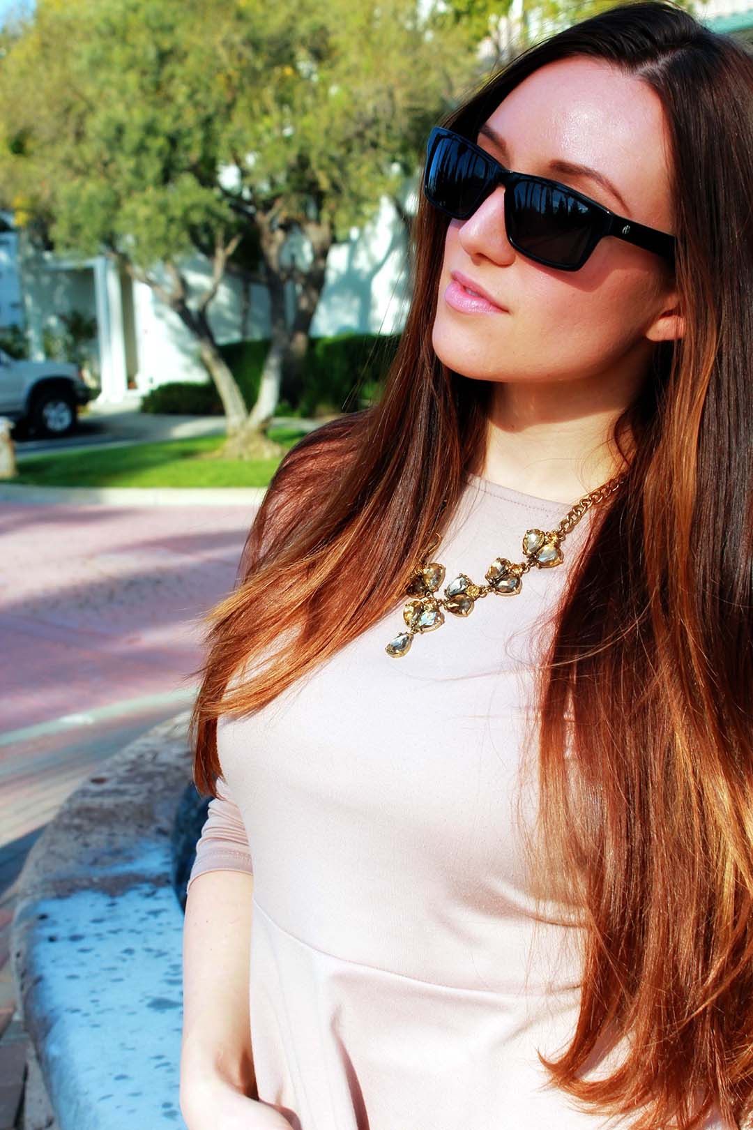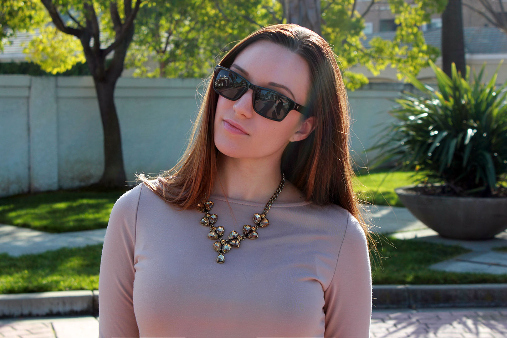 Top: Green Envelope Los Angeles, similar here // Skirt: Tracy Reese, similar gorgeousness here // Necklace: TJ Maxx // Heels: Vince Camuto // Bag: Valentino // Sunglasses: Electric // Nails: Essie Play Date