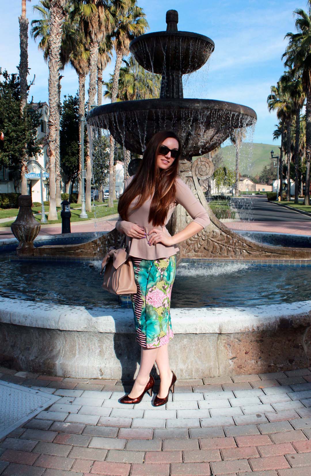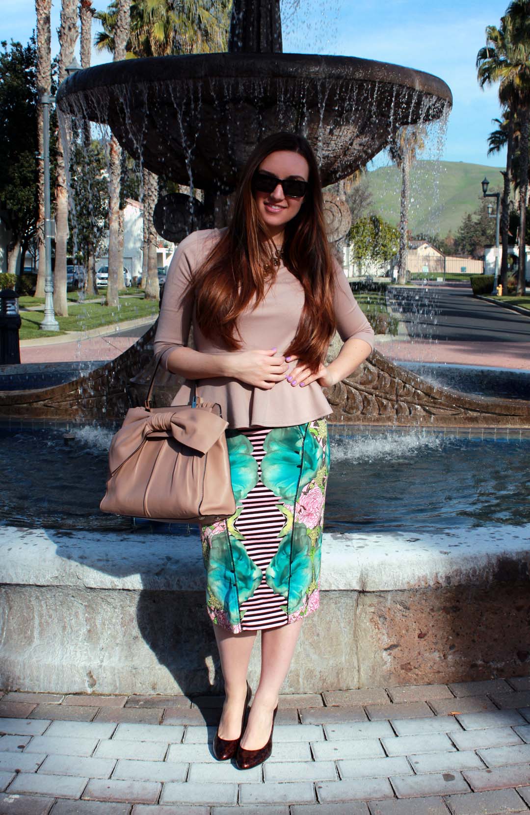 This is such a gorgeous outfit! I really love the print of your pencil skirt, so pretty! And the bow bag is super cute!