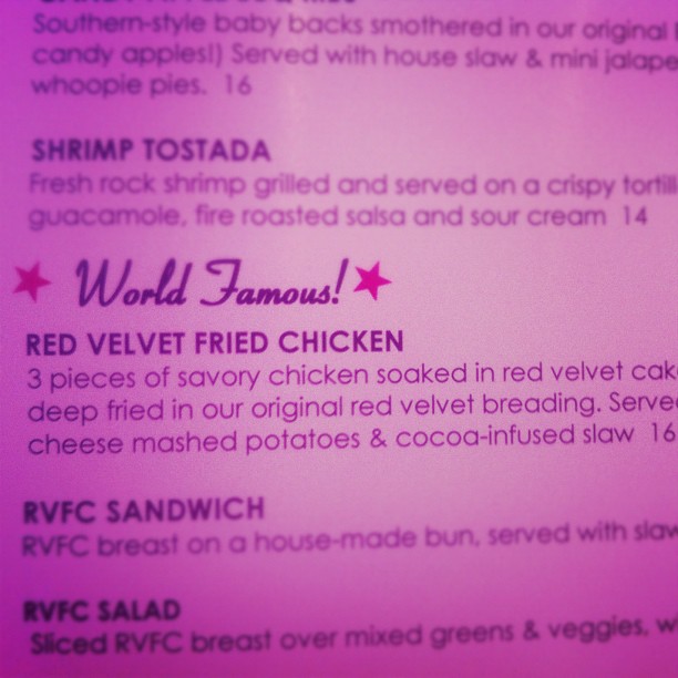 Red Velvet Fried Chicken?!?! I couldn’t bring myself to order this, not sure if this sounded amazing or really gross…