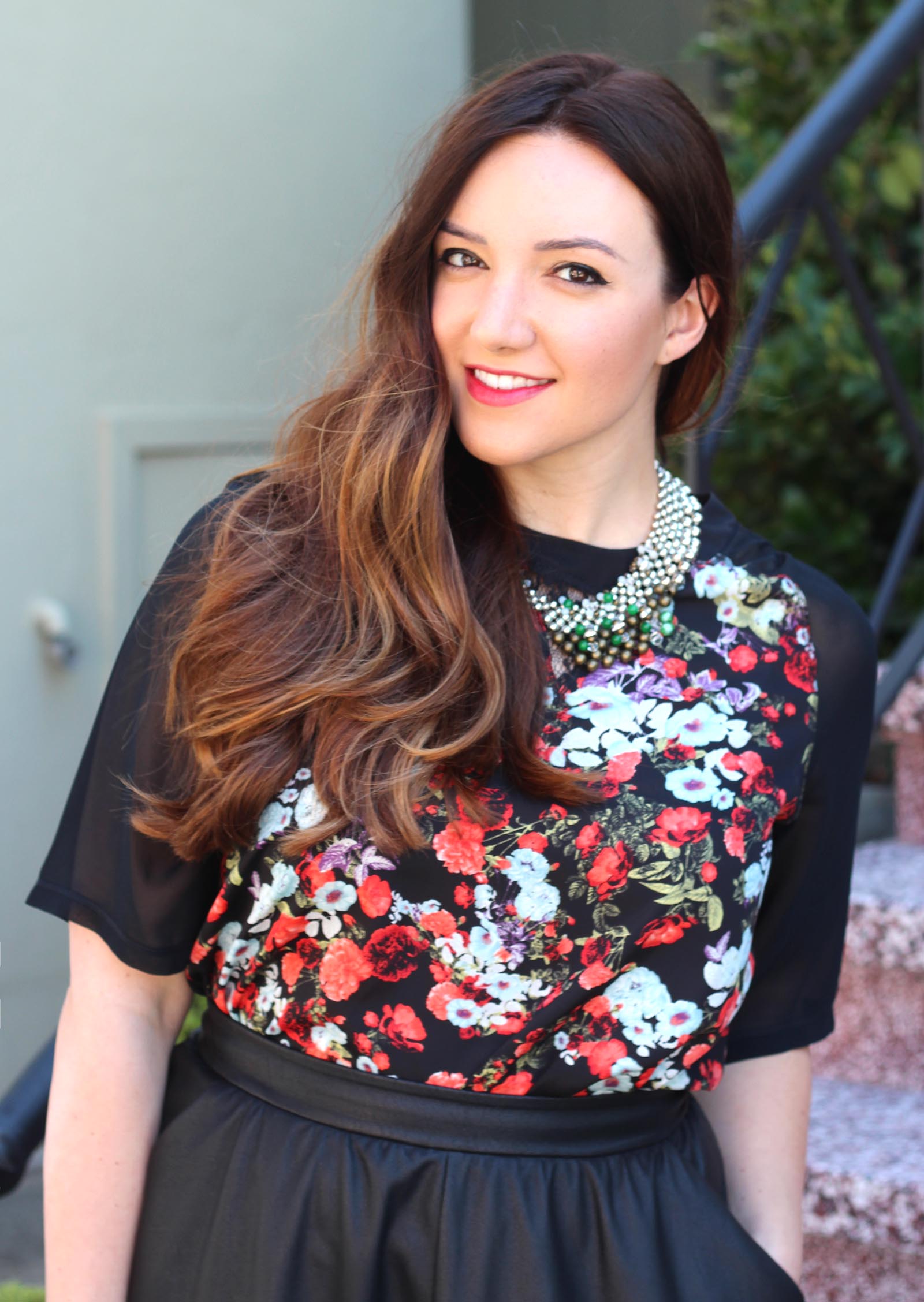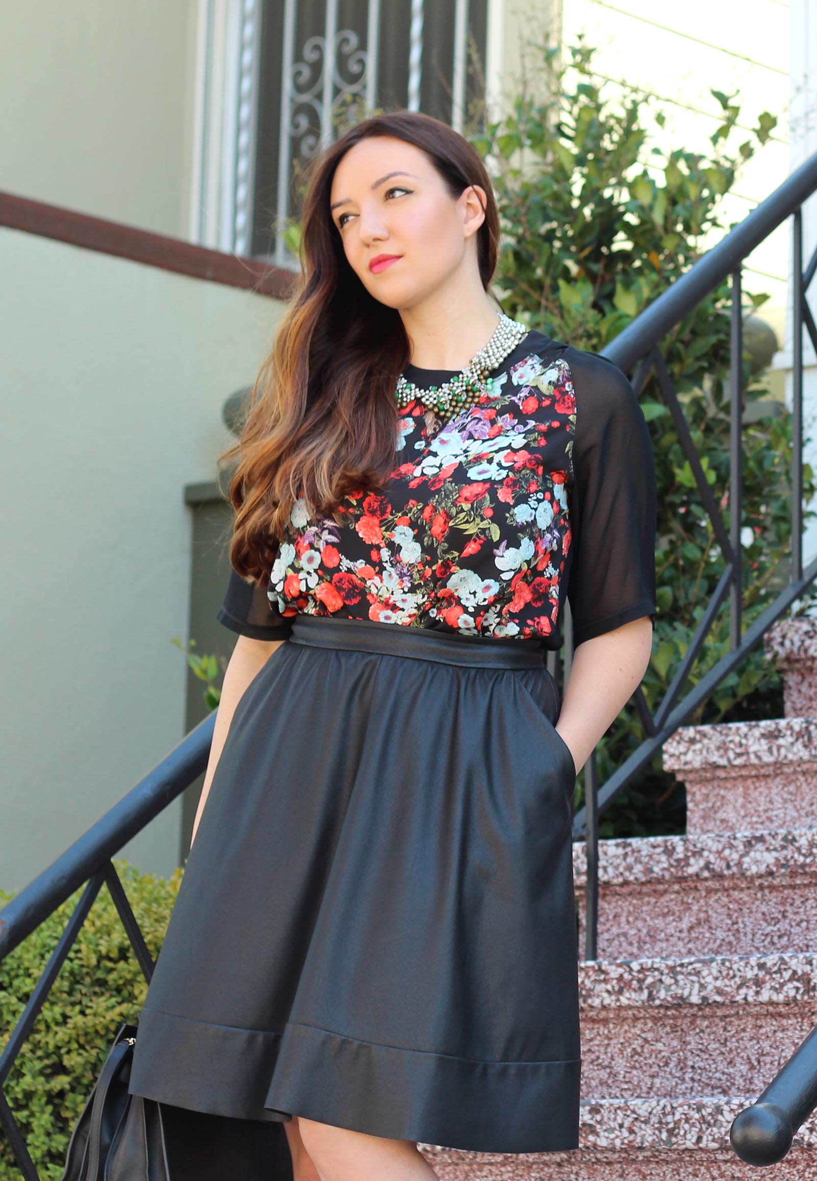 For today’s look, I wanted to look ‘fall’ while being able to withstand San Francisco ‘hot-tober’. I got this BCBG top via Le Tote and love the fall colors and floral print but also that its feather light and airy, perfect! Of all of the items I’ve tried via Le Tote (probably about 45 different pieces to date), this vegan-leather skirt has been my ABSOLUTE favorite. I’m obsessed with it. It has this interesting suede-like texture to it and it’s so flattering, I love it. I’m going to be wearing this all fall long, yay!