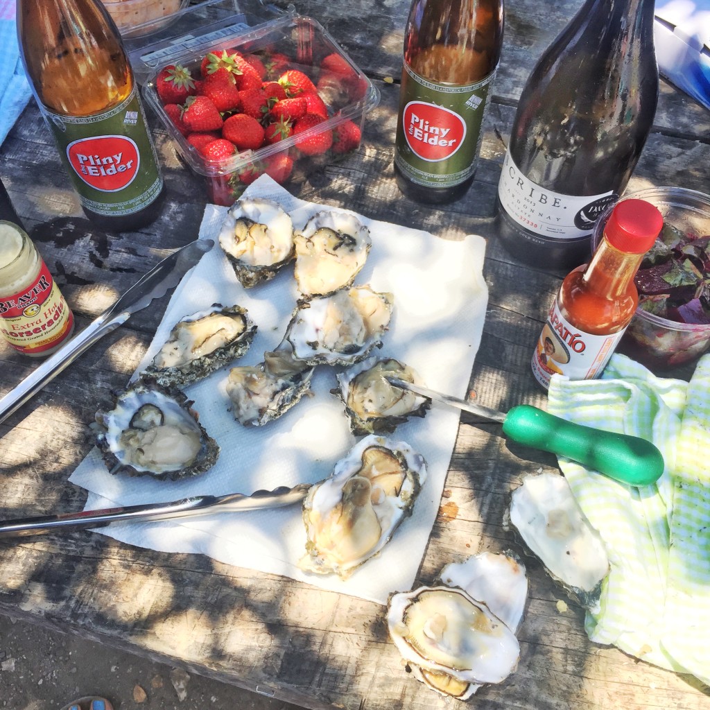 We went to Tomales Bay last weekend to an oyster farm and it was amazing and so much fun. You pack up your picnic in the car (we brought beer, wine, and strawberries), stake out a picnic table, and shuck your own oysters straight from the bay. I’m not a huge oyster fan but I’ve learned to dress them up with lemon and hot sauce so I’m starting to like them more. But the most important thing is great company and a great experience, right?
