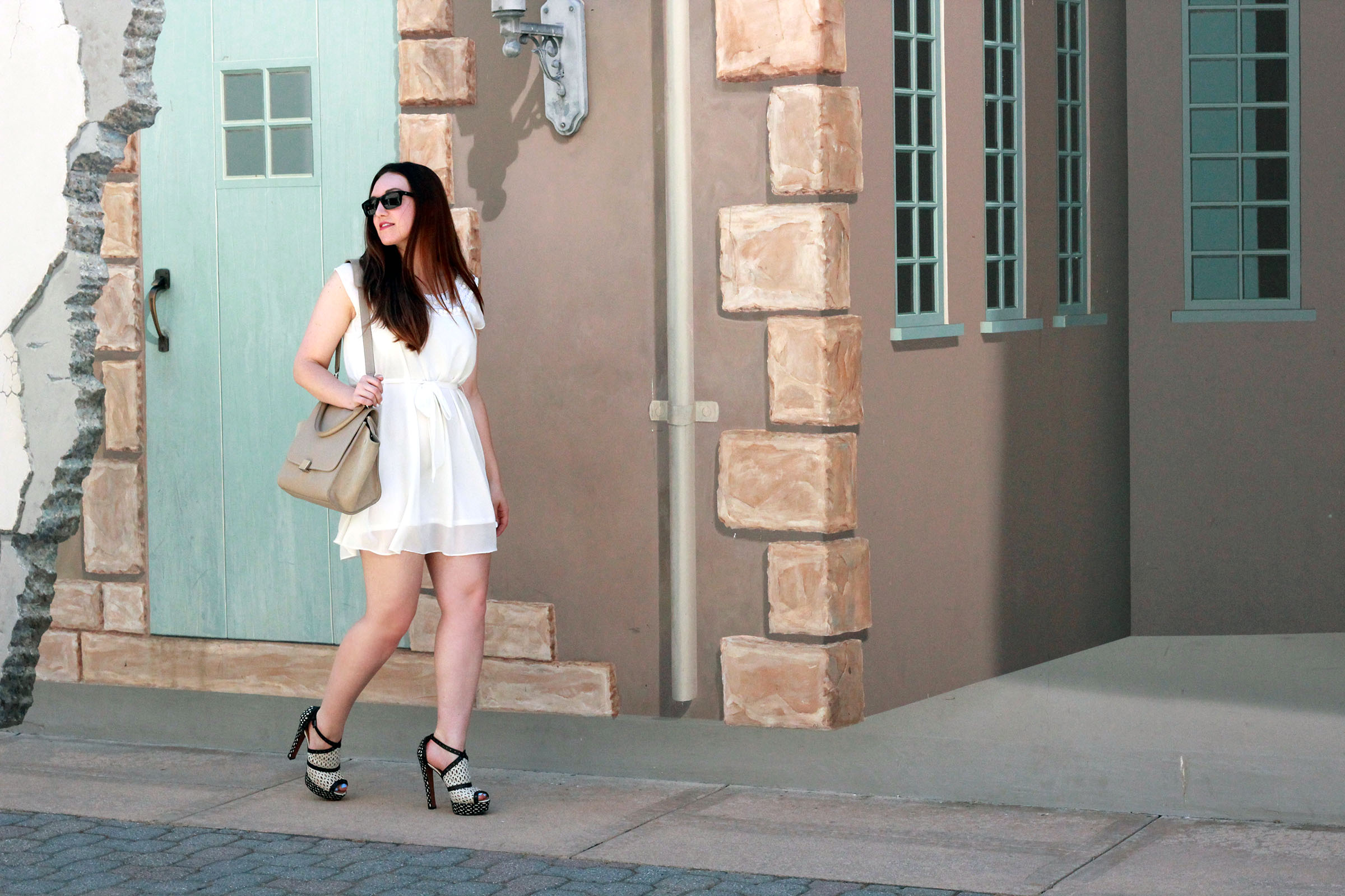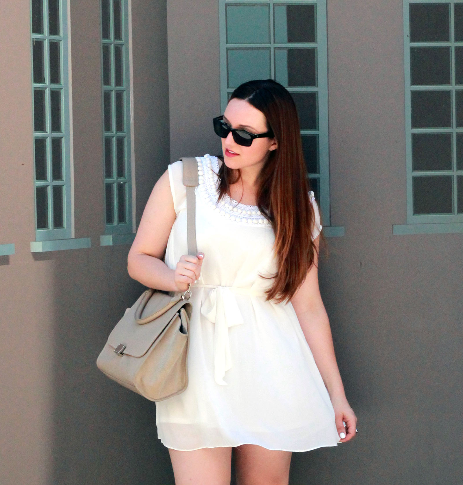 I think I’m trying to hold onto the last tiny bit of San Francisco’s Indian summer and rebelling against fall in this little white dress. Fall is my favorite season for fashion by far but I’m giving one last hurrah for summer in this fluttery chiffon dress with a simple tie at the waist. Strap on some sky-high (but super comfortable!) Alaïa cage heels and I’m off. I’m going to definitely transition these heels for fall with some warm tights but I think this is the last I’ll see of this dress for a few months. See you later summer!