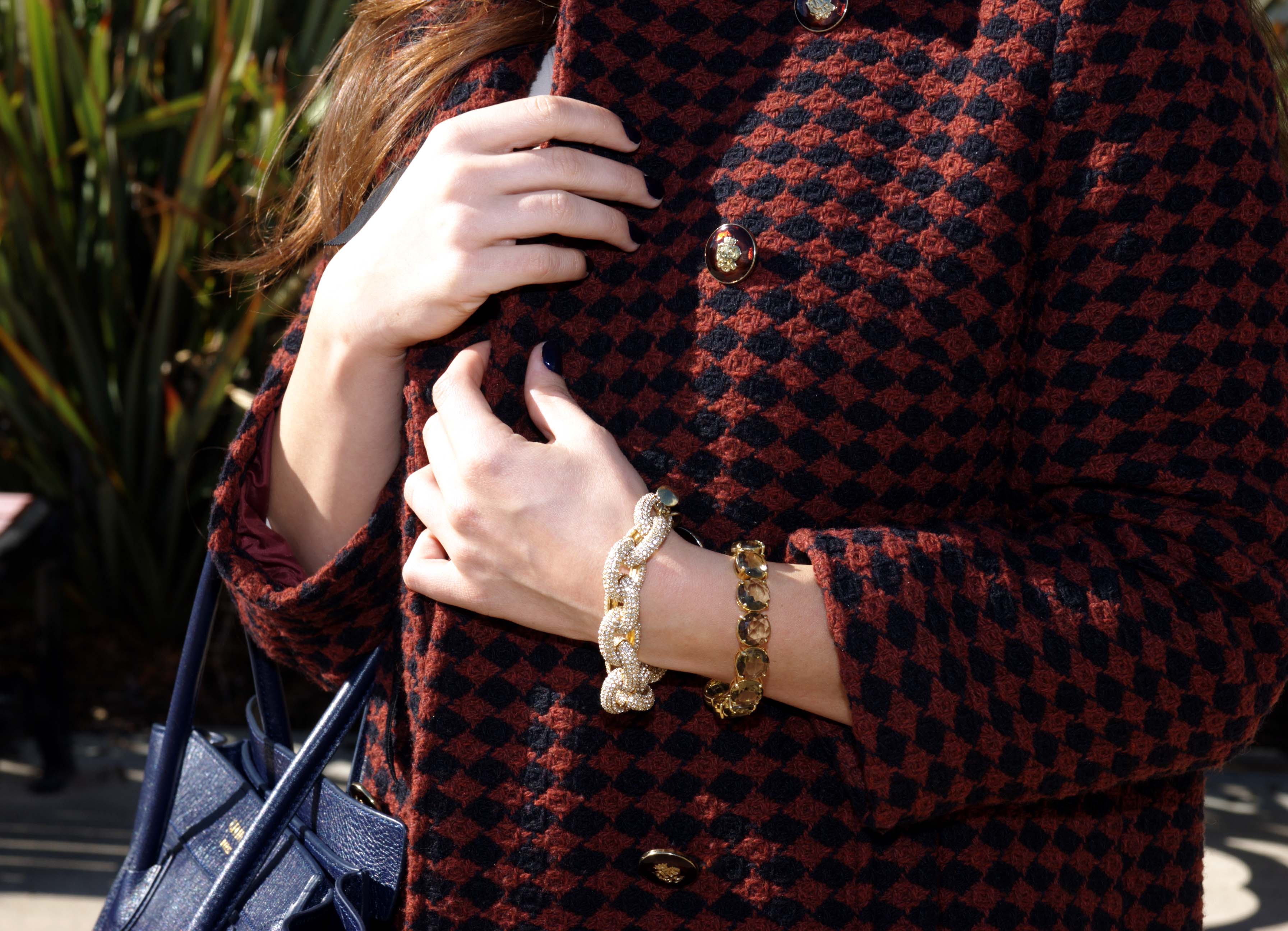 Dress: Ted Baker // Coat: TopShop, similar here // Heels: Kurt Geiger // Bag: Celine // Bracelets: JCrew and JCrew // Nails: China Glaze First Mate