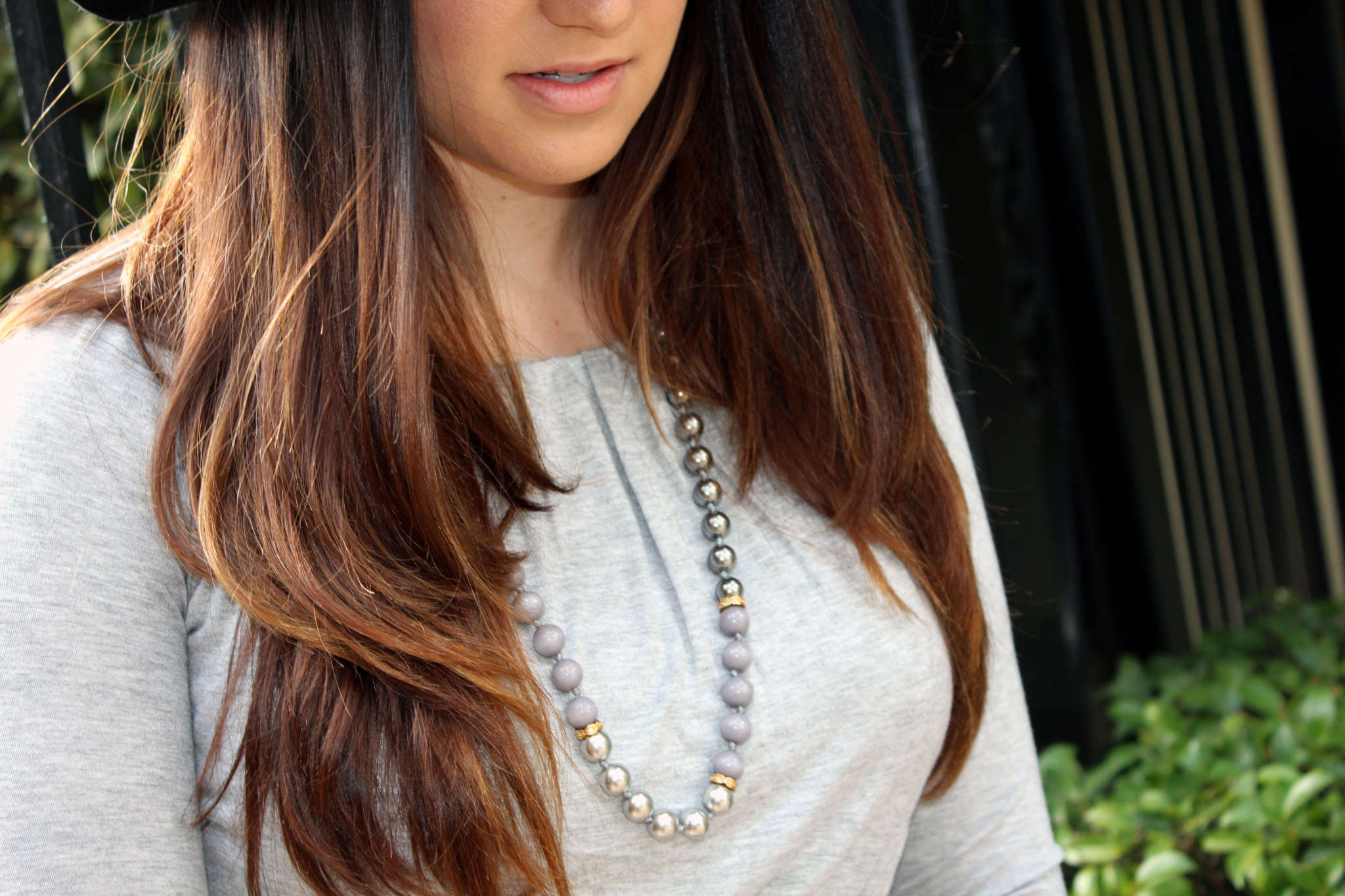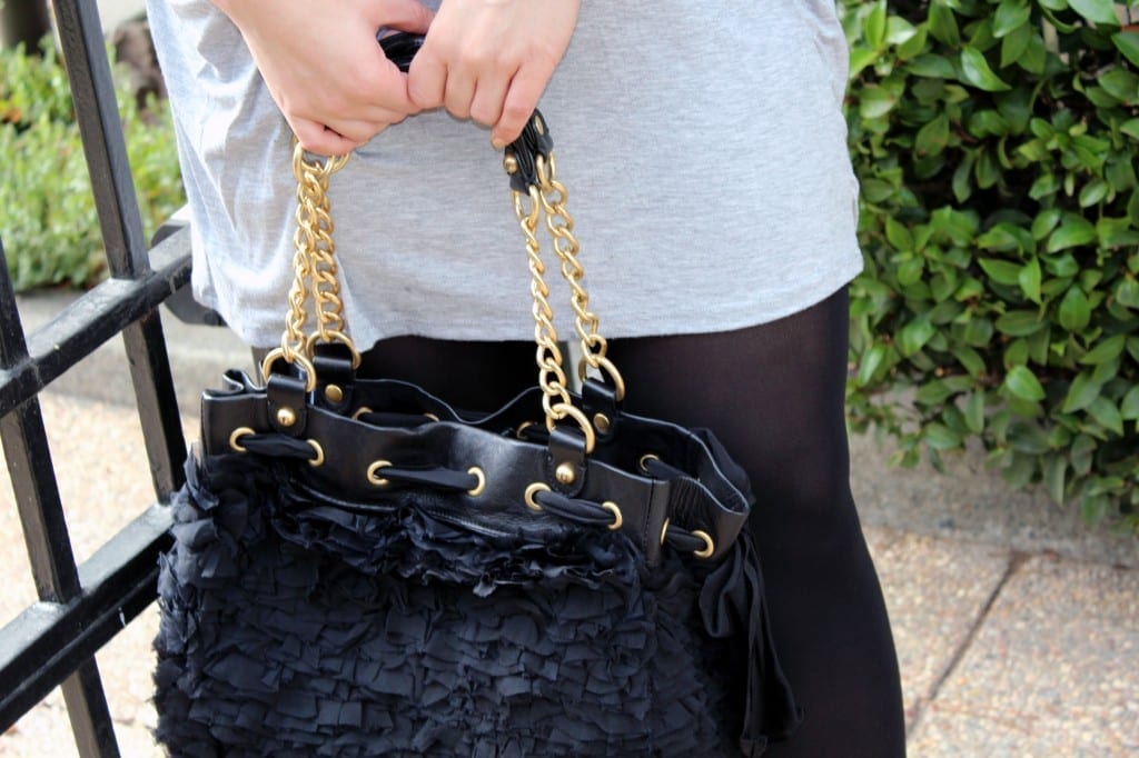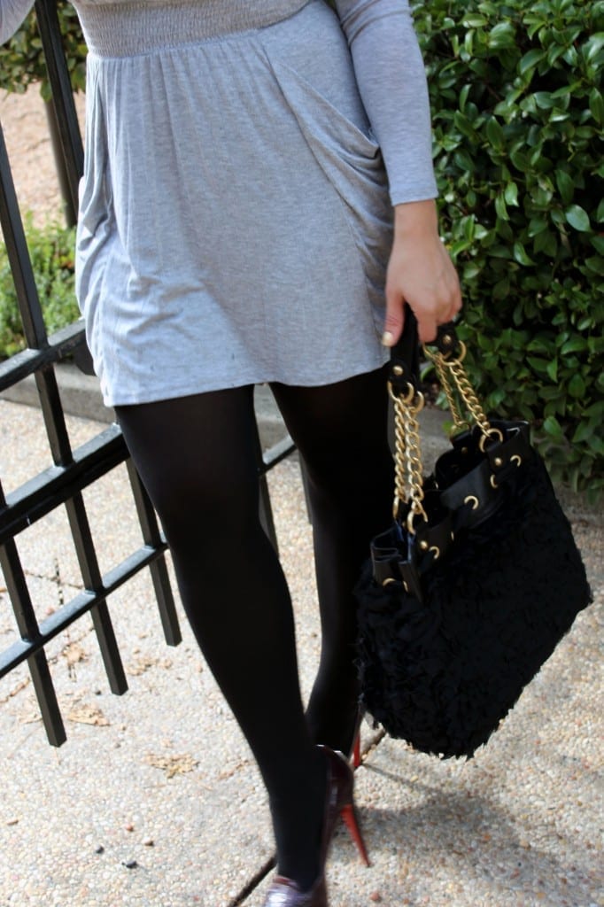 One of the easiest ways to transition your wardrobe through the seasons is to add warmth through layers, and in this case using the world’s most incredible tights by Wolford. I paired my Wolford tights with this jersey dress and big floppy hat for a nice neutral blocking look that was easy to pull together but still looked clean and polished. For me, I need a large bag to carry around all of my daily essentials and this Juicy Couture bag does the trick with delicate chiffon and soft leather. Add a sparkly JCrew necklace for extra glam around the face and you’re set!
