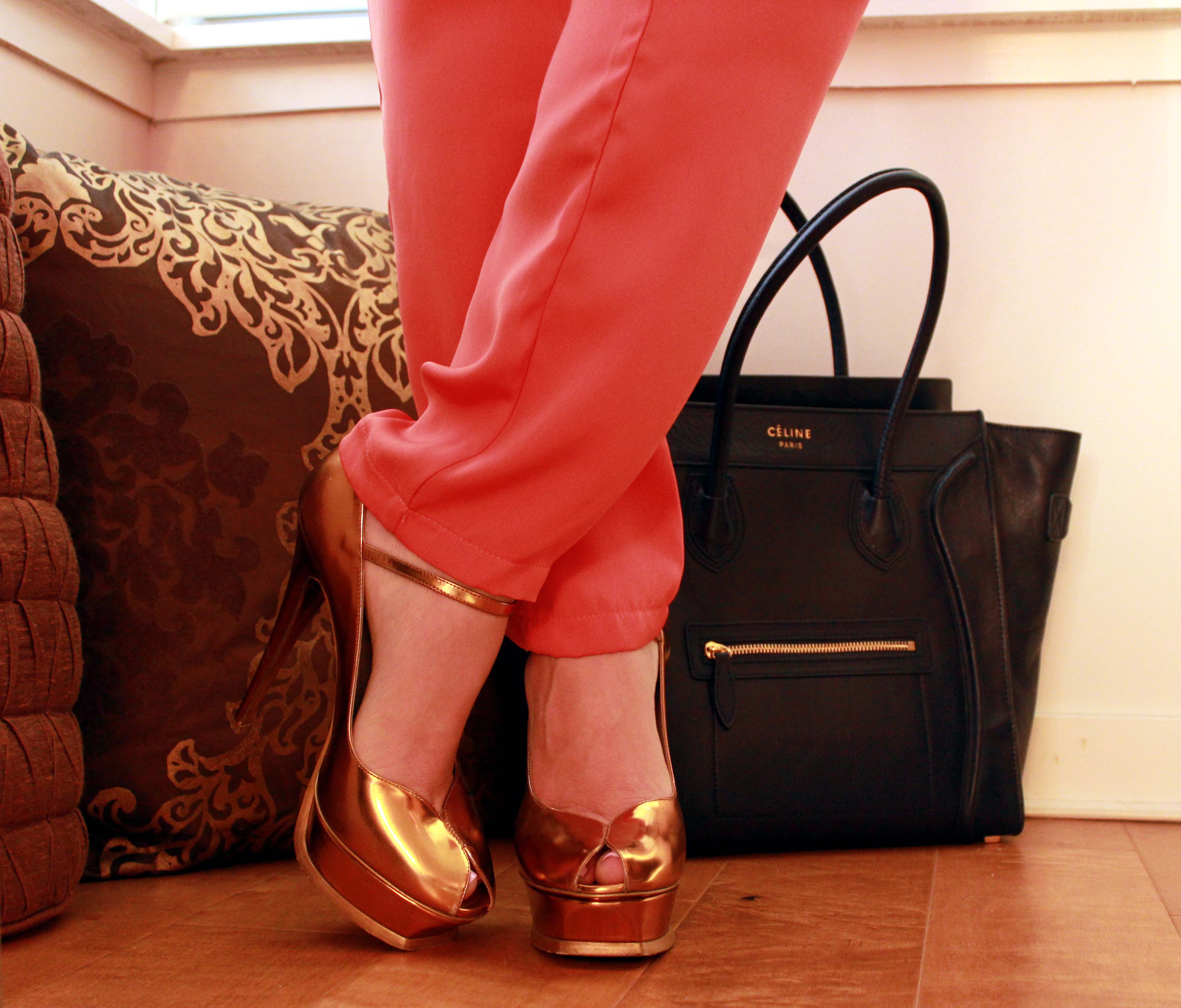 Top: Nordstrom // Pants: ASOS, similar here // Shoes: YSL // Earrings: Marie Todd c/o // Bracelets: Evil eye souvenir from my travels in Istanbul, Forever 21 necklace worn as a bracelet // Ring: Banana Republic, similar here // Bag: Celine // Nails: OPI Siberian Nights // Lips: Josie Maran Lip Stain in Jive