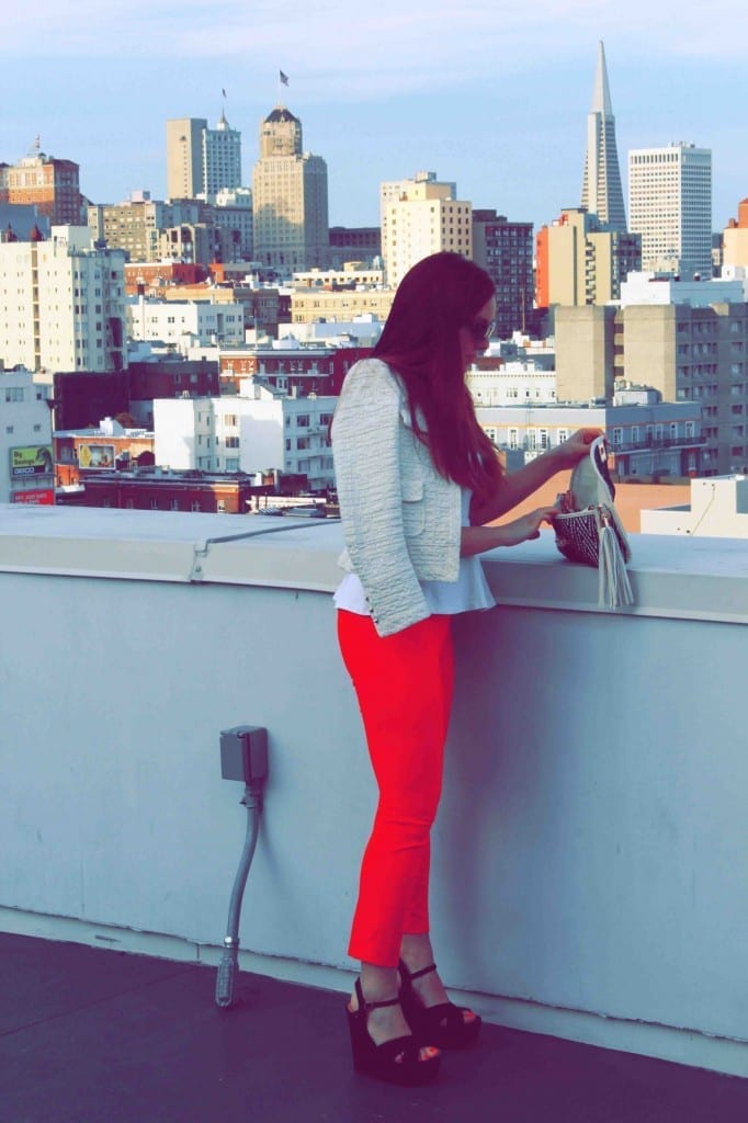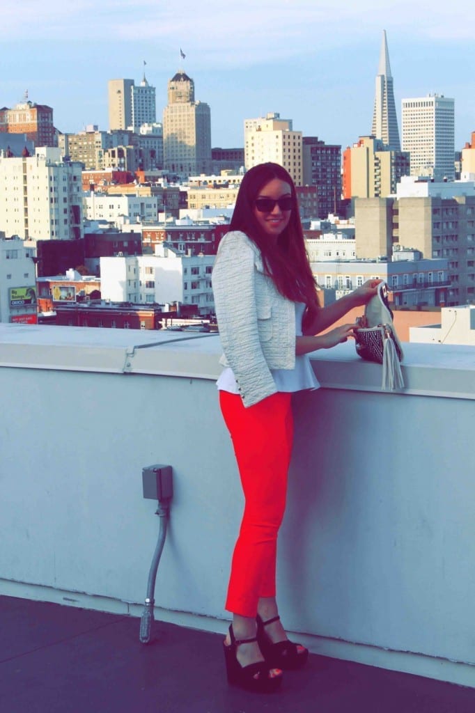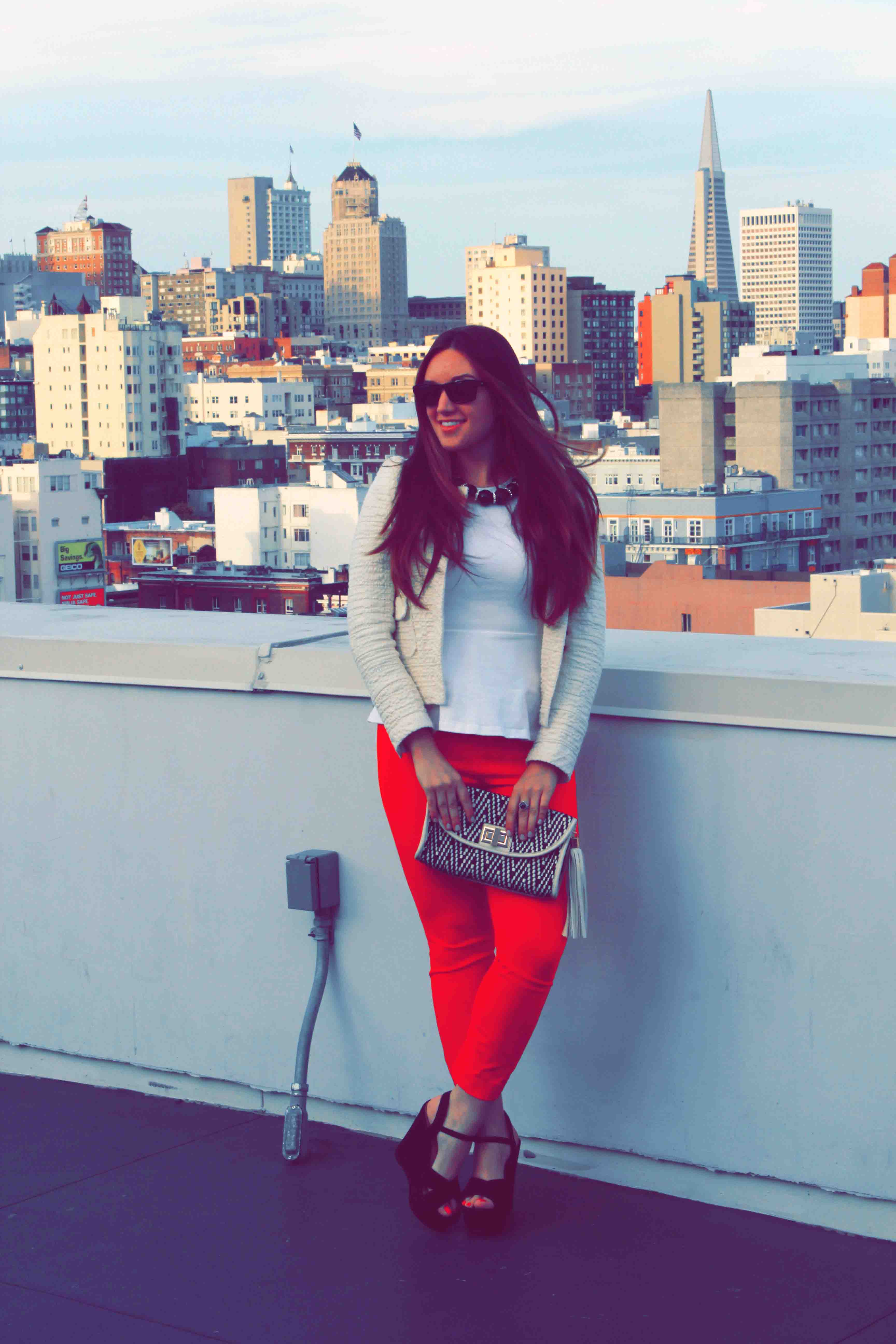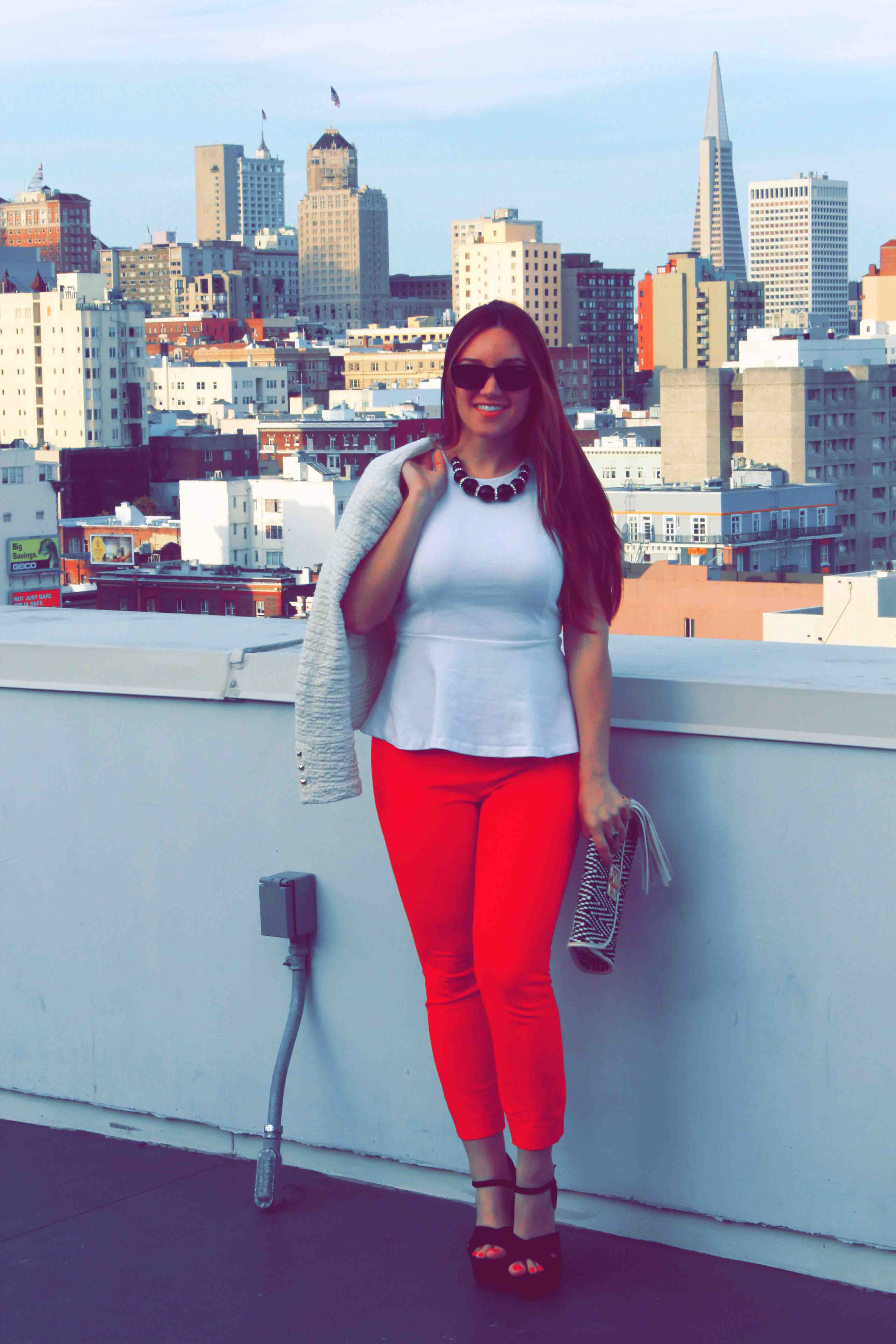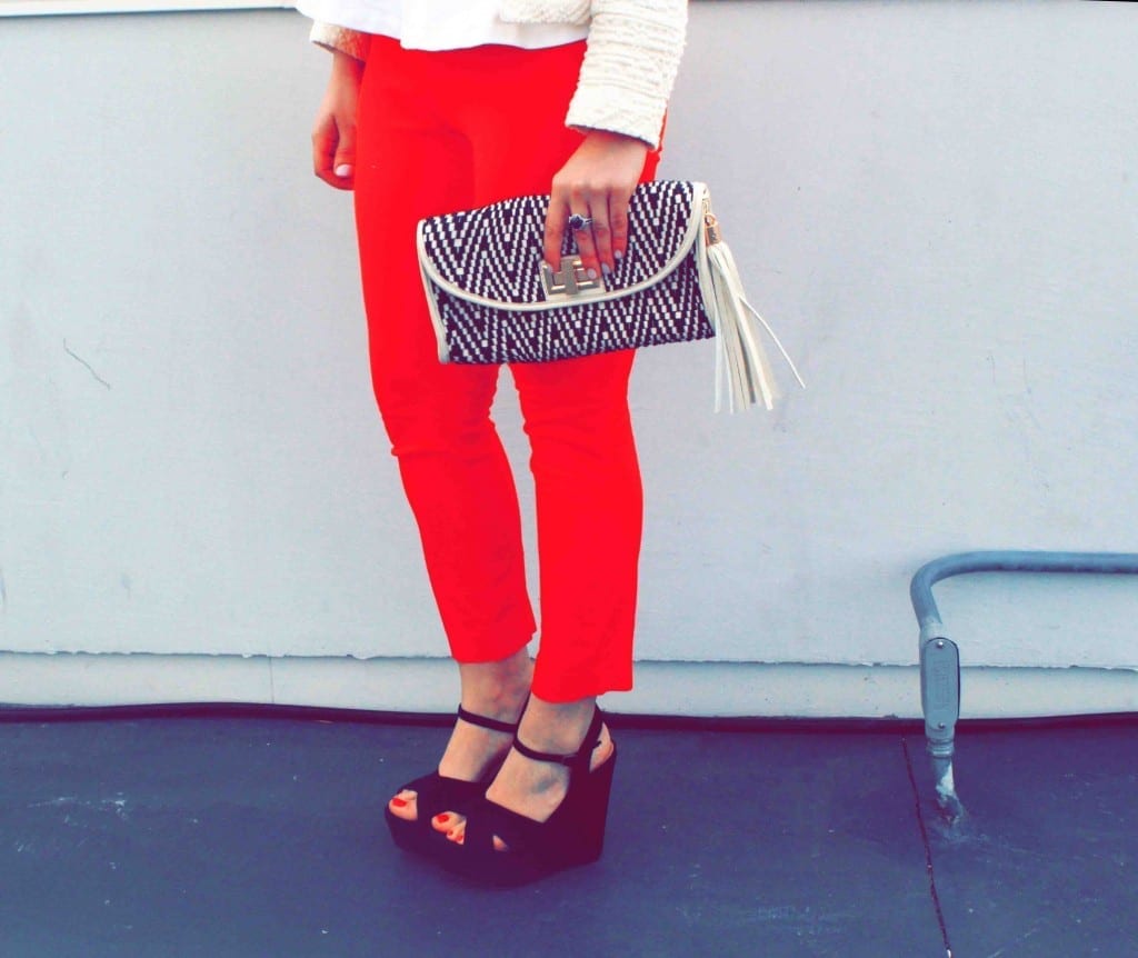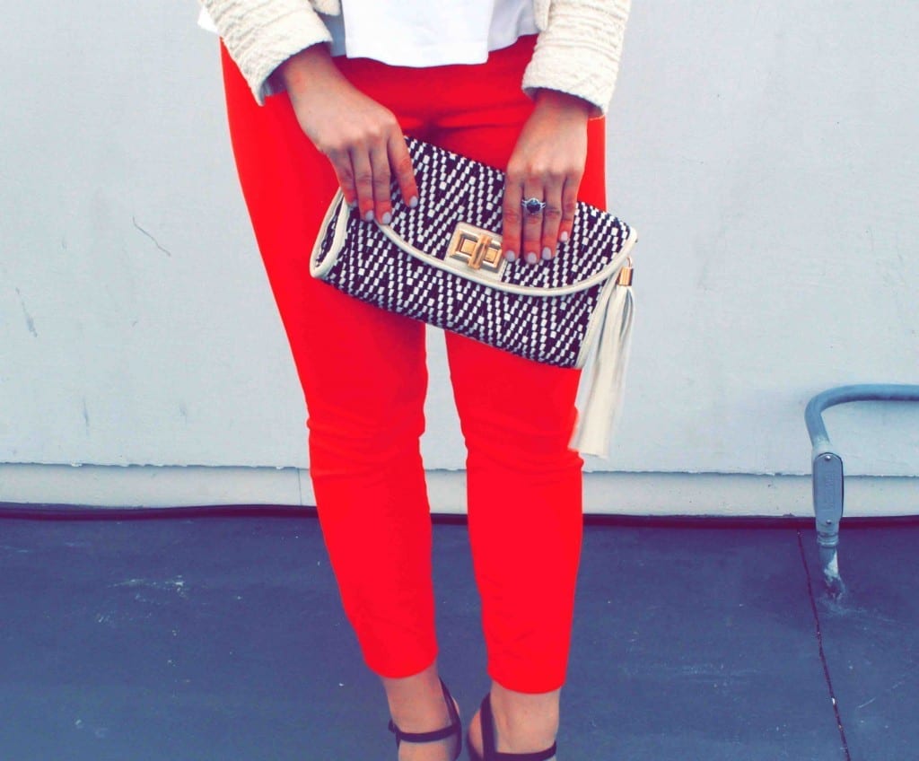 I love peplum too. You look great in these shots – the jacket, clutch and red pants tie it all together so well!