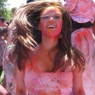 My life has been filled with high-intensity pigments lately…from these bright poppy pants to Essie Watermelon painted toenails to the pigmented powders  from this weekend’s Holi festival at Stanford University.  For those of you who aren’t familiar with Holi, its essentially an Indian festival that celebrates the arrival of spring by dressing in white and throwing colored powders at each other until you’re head to toe covered in colors–all while running around, dancing and listening to amazing music.  It was a lot of fun participating in it this past weekend but I’m glad that the cleanup portion is over!  I successfully used an entire bottle of body wash and drained the battery on my Clarisonic, but I am back to my normal skin shade, whoohoo!