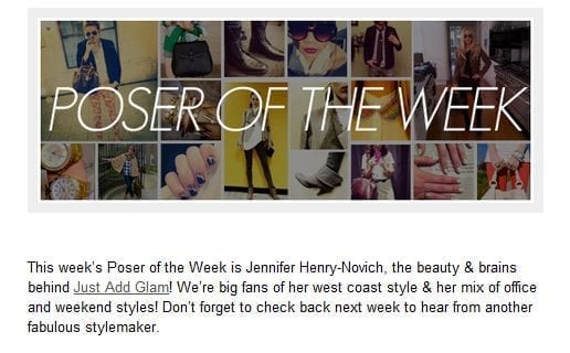 I recently was asked by Pose.com to be their Poser of the Week and do a little Q&A with them. It was a lot of fun working with the Pose team and I wanted to share the interview with you, including beauty tips, favorite restaurants and my style crushes! Click to view the interview here! Hope you enjoy it!