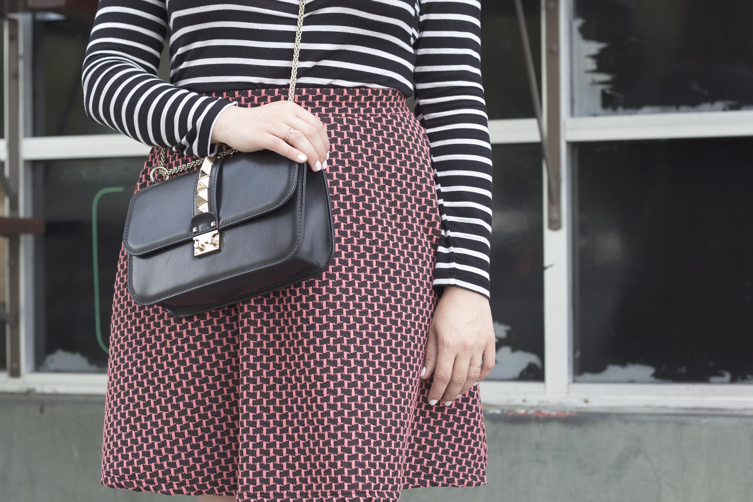 Top: Tart via Le Tote // Skirt: 14th and Union via Marshalls // Heels: TJ Maxx // Bag: Valentino // Heels: KDB // Rings: Porter Gulch