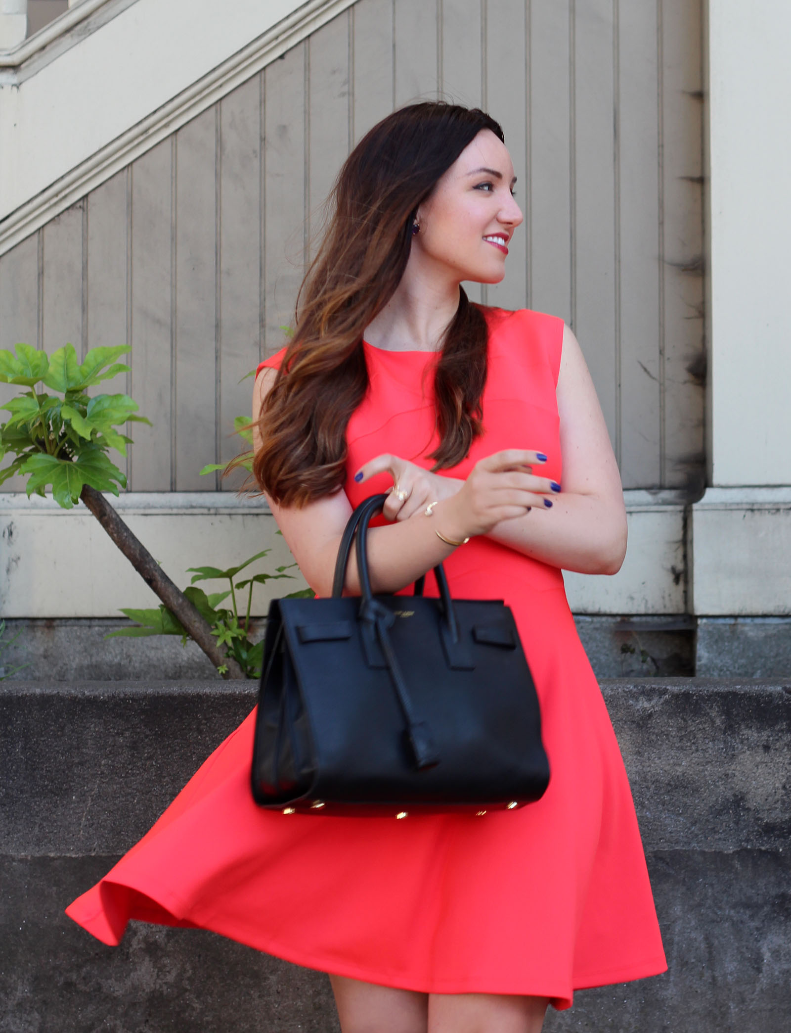 Dress: Ted Baker // Booties: Vince Camuto // Bag: Saint Laurent // Bracelet: Giles & Brother