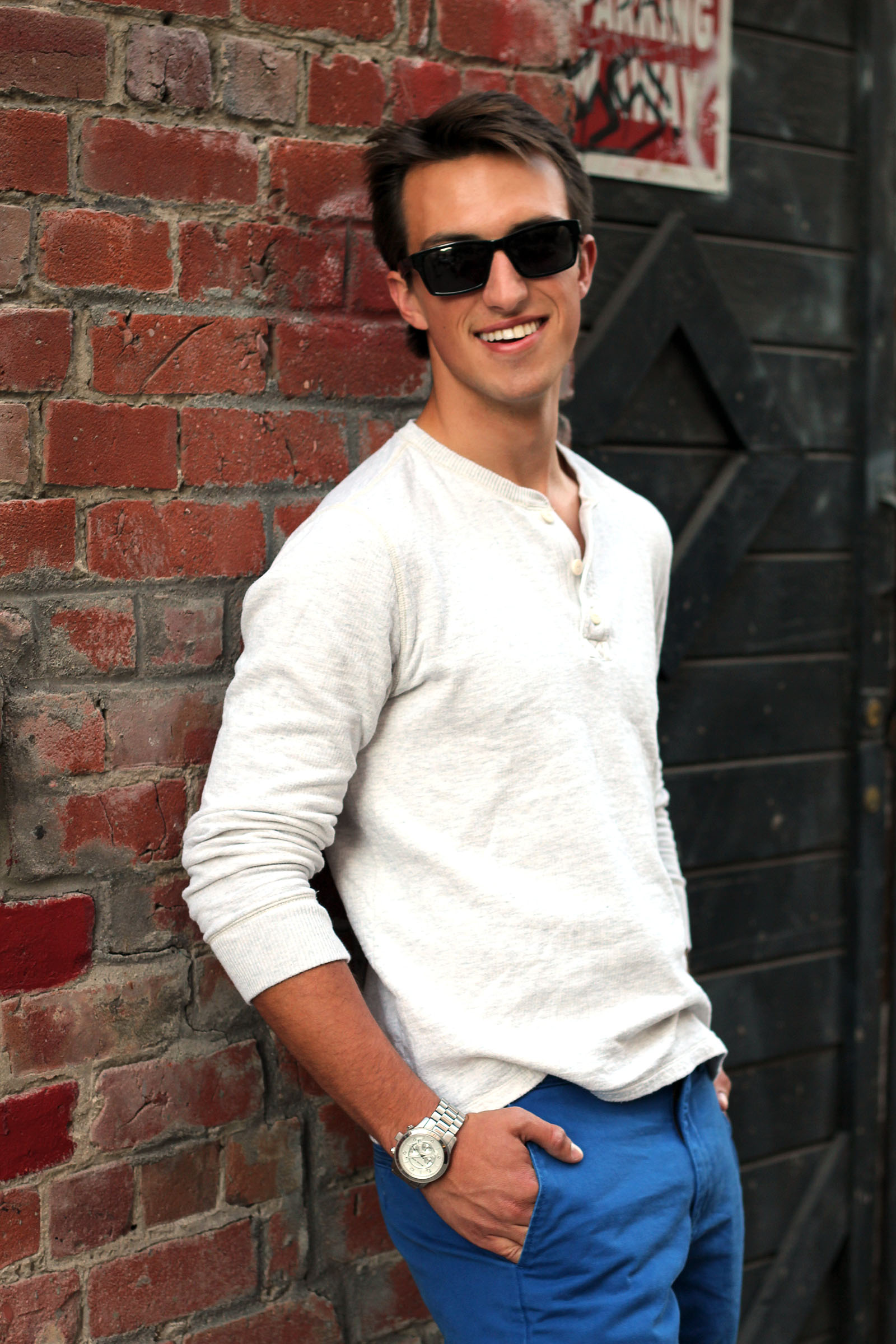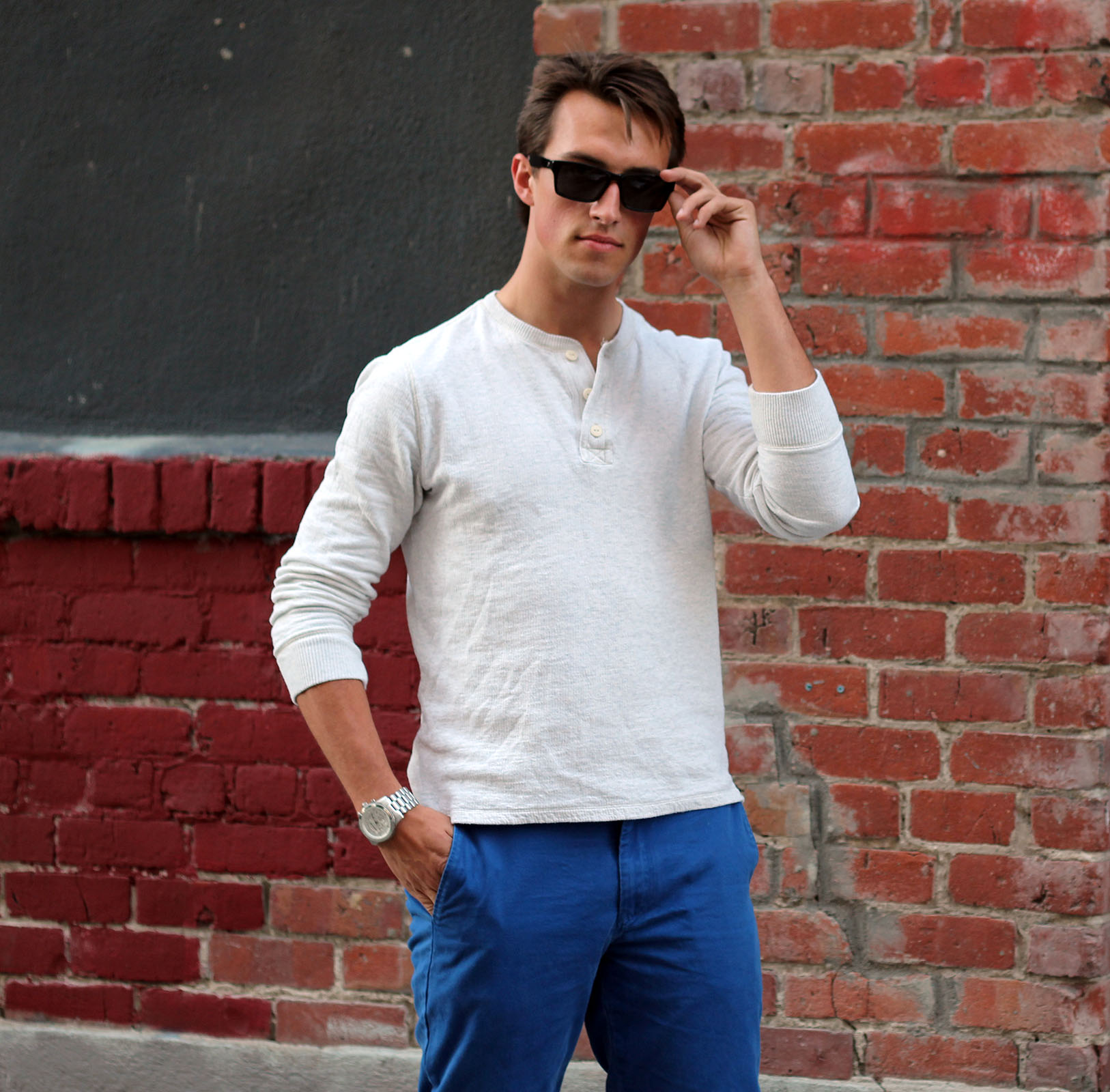 Andrew lives in henley shirts so I wasn’t surprised to see him show up in this.  Paired up with his blue chinos, he wore his Oliberté boots–handcrafted boots made in Africa that support worker’ rights in sub-Saharan Africa–we love fashion that supports a good cause!  Finish it off with a cool pair of shades and Andrew looks amazingly casual but well put together.