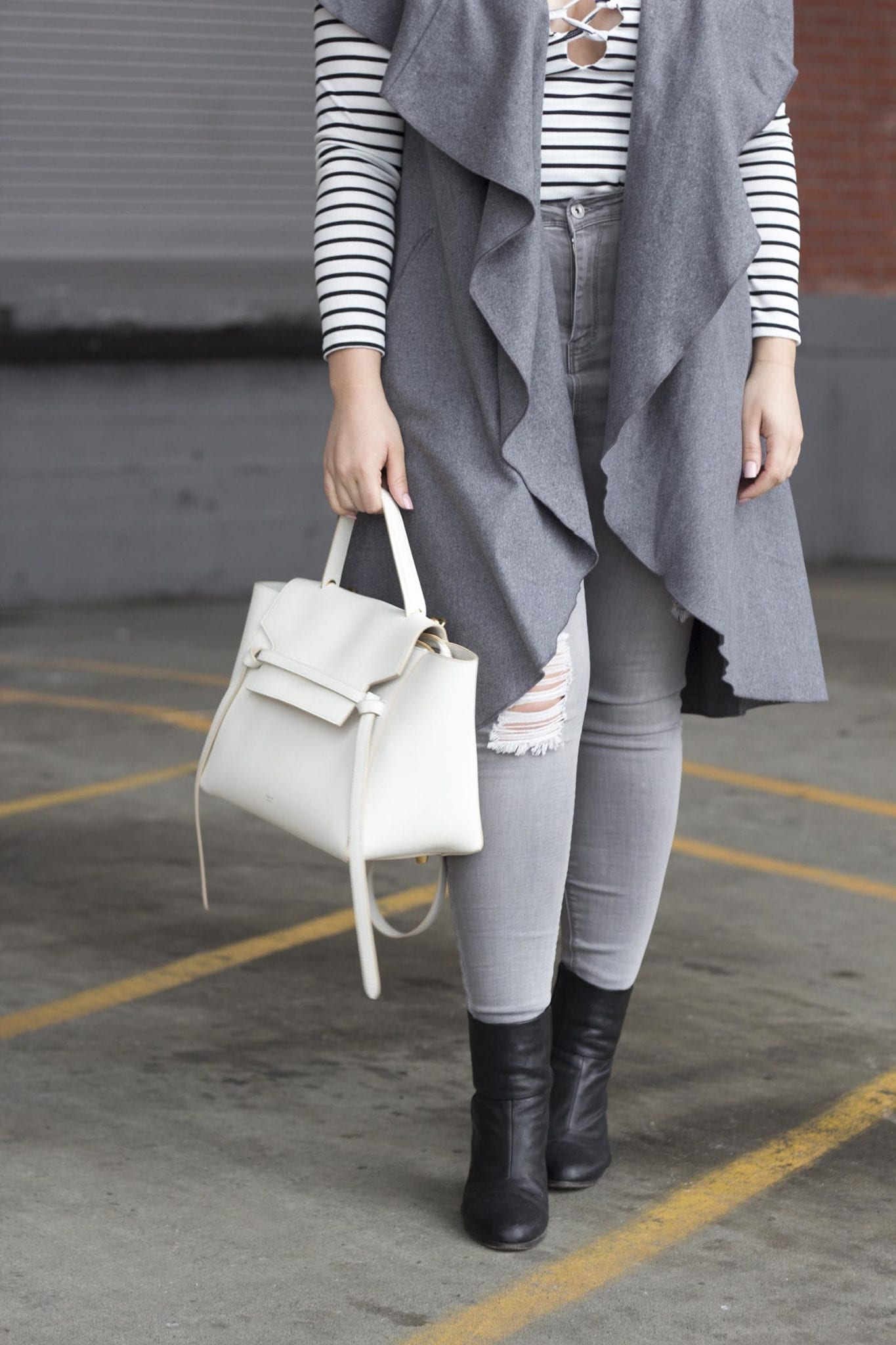 Outfit – Bodysuit: Missguided // Vest: borrowed from Chelsea // Jeans: Missguided // Boots: Rag & Bone // Bag: Celine