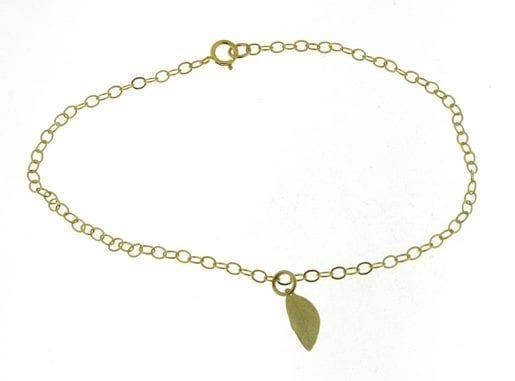 Fashion and costume jewelry is fun, but when it comes to the real stuff I like my jewelry to be delicate and simple so that its timeless and can be worn throughout the years even as fashion fads pass. This dainty bracelet is all that and more with a sweet leaf charm to add a special touch to your outfit. Tres chic!