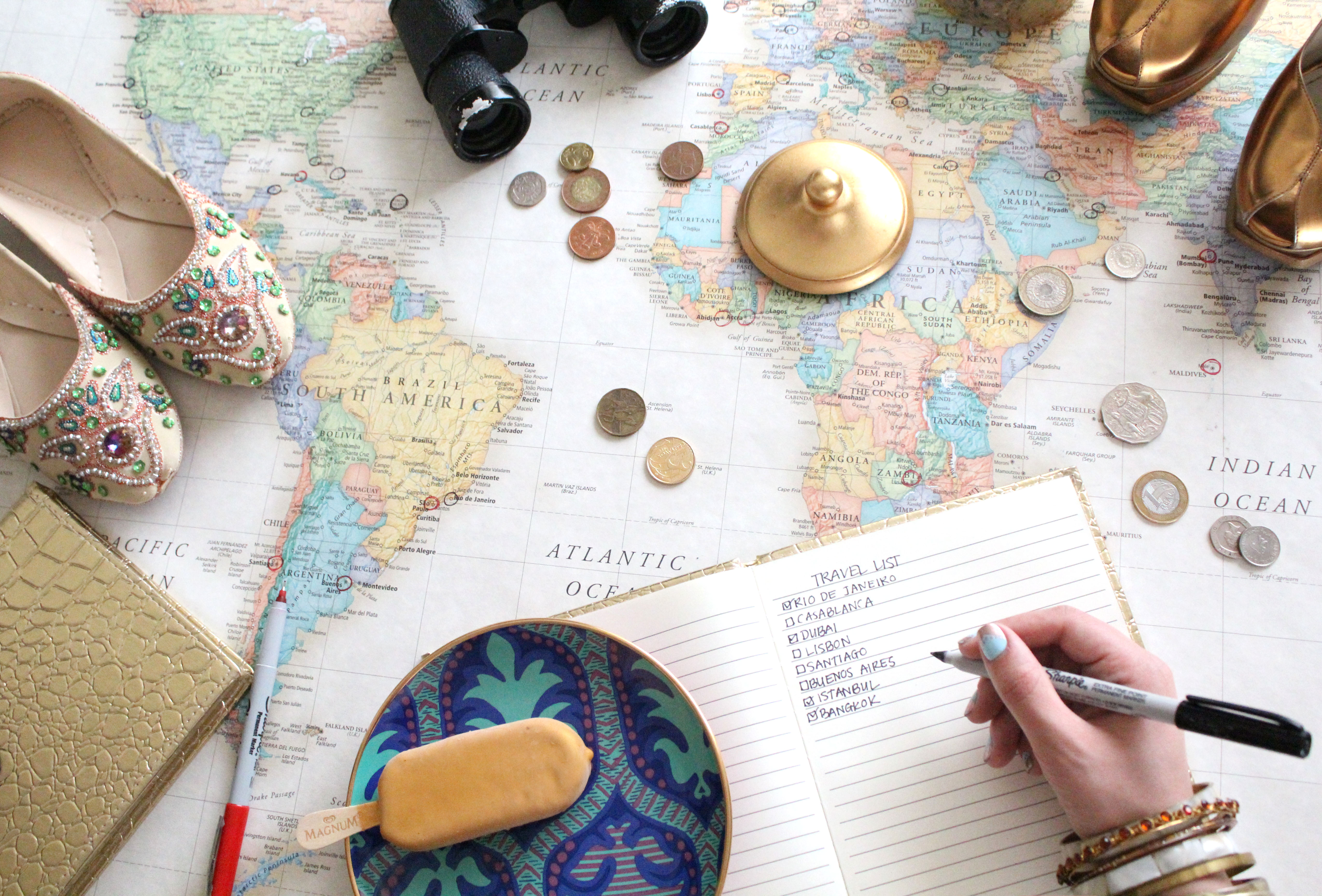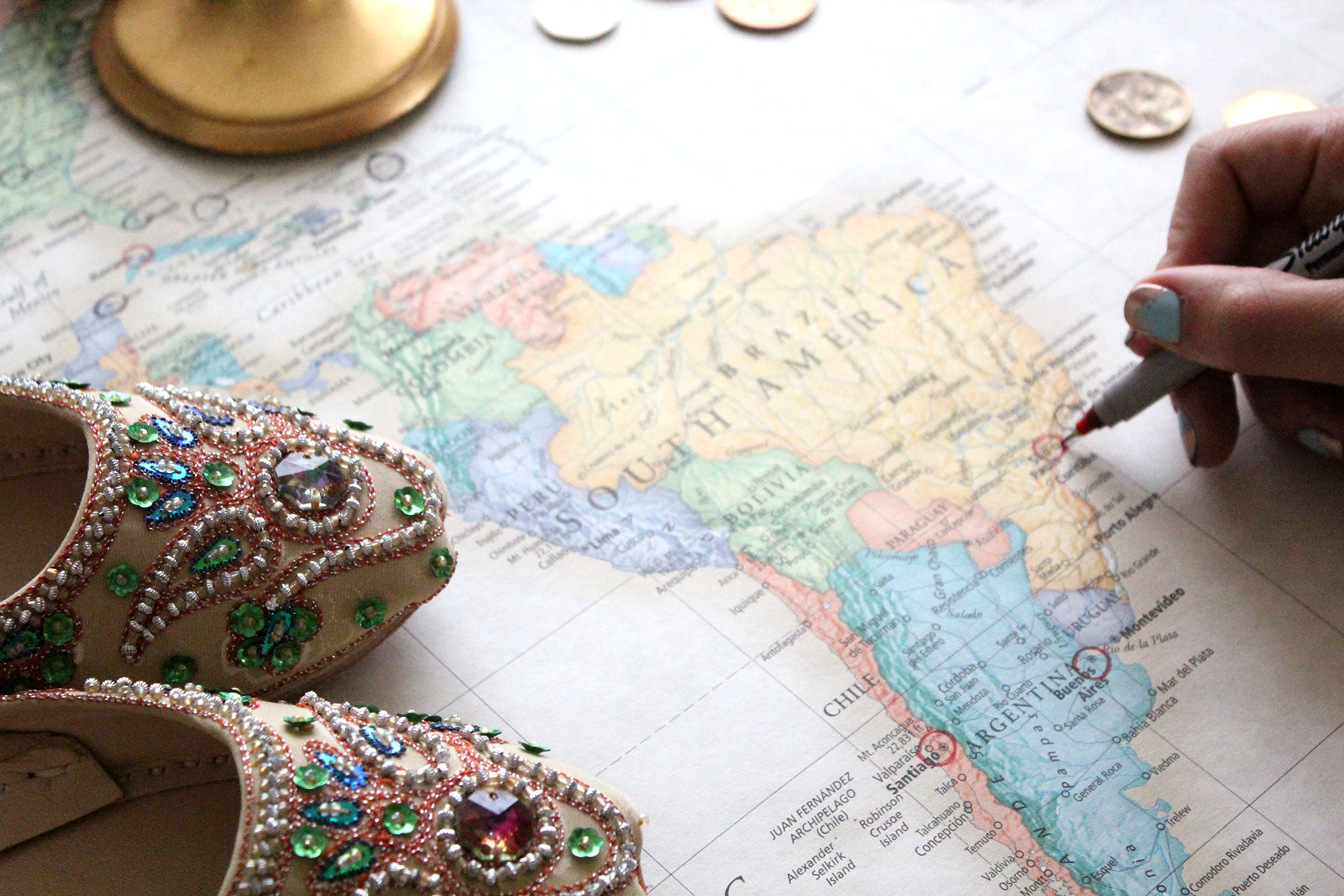 During my afternoon of travel reflection, I picked up a world map and started to draw on it. First, I circled in black the places I had been lucky enough to travel to. I love exploring new cultures other than my own, so some of my favorite places to visit have been Egypt, Thailand, United Arab Emirates, Brazil, and Tahiti. Next, I circled in red the places on my travel bucket-list: places I need to travel to in my lifetime–a few include Argentina, India, Maldives, and Zambia.
