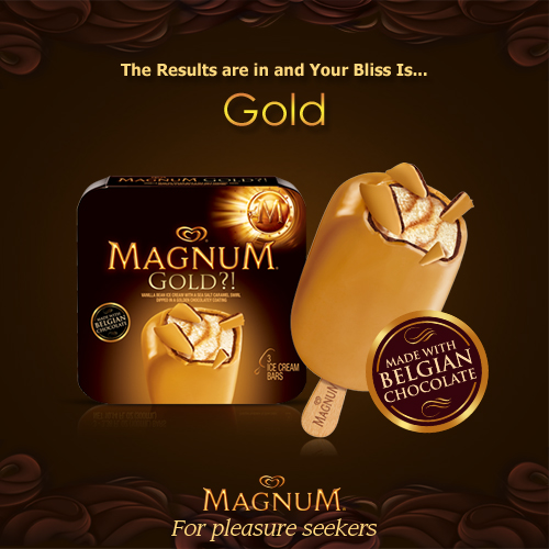 Have a toast to blissful, chocolatey pleasure and head into a Safeway and grab a participating box of Magnum for $1 off! Offer valid in-store. Then Discover your Chocolatey Bliss, by taking the Magnum personality quiz. Answer questions to reveal your Magnum flavor profile, then enter for a chance to win a variety of prizes. I took the quiz and got GOLD as my result. Now it’s your turn – share a link to your e-card result in the comments below. Take the quiz HERE.