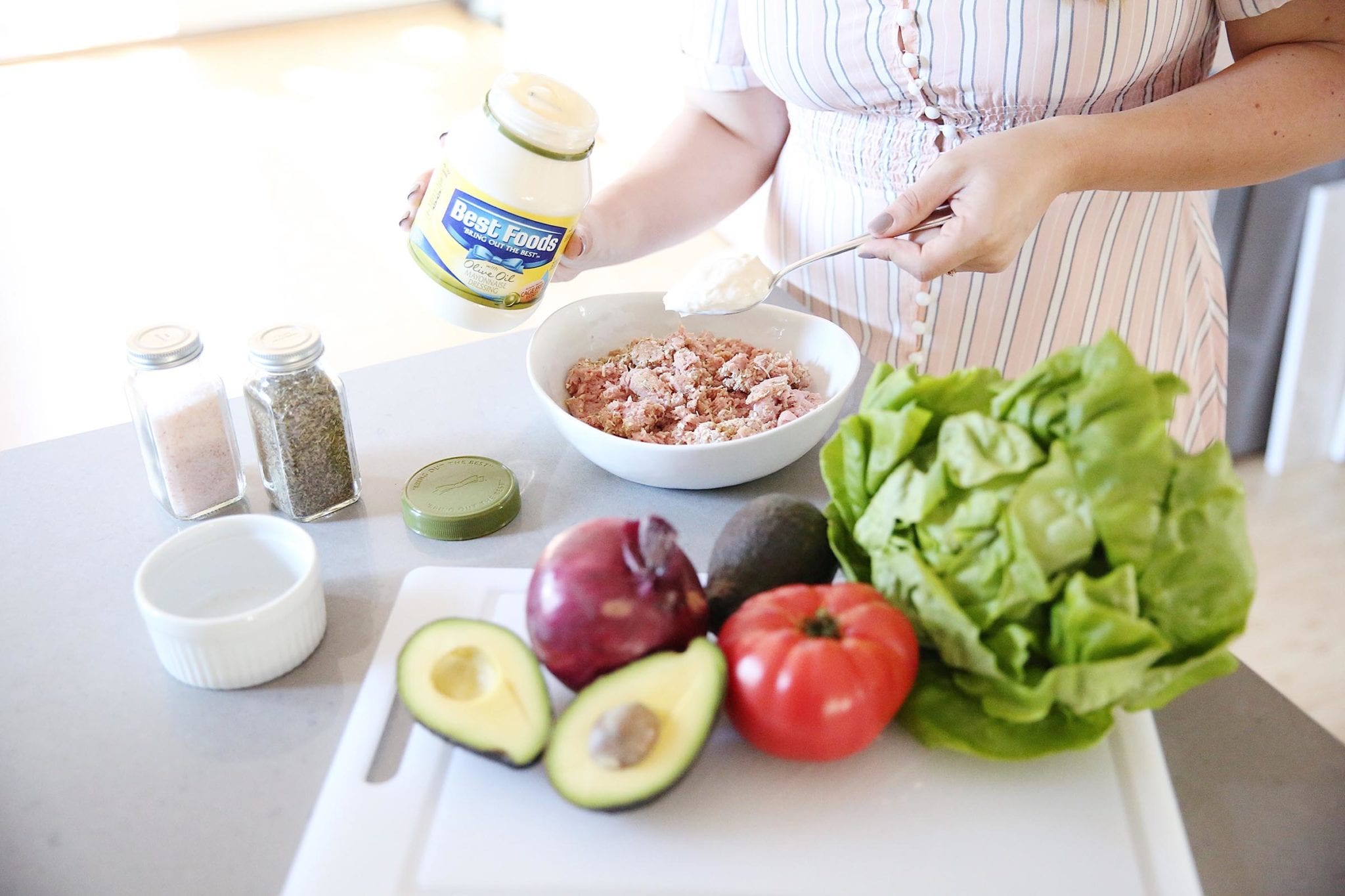 Head to your local Safeway to stock up on everything you need for these bunless burgers! When you spend $30, you will save $10 instantly on participating Unilever items like this Best Foods Olive Oil Mayonnaise. Cheers to summer grilling!