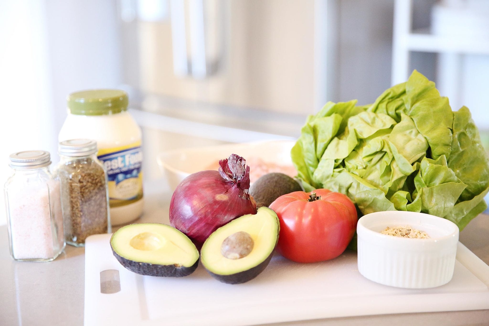- Burger fixings (I opted for butter lettuce for the buns, heirloom tomatoes, red onion, and creamy avocado to top these burgers