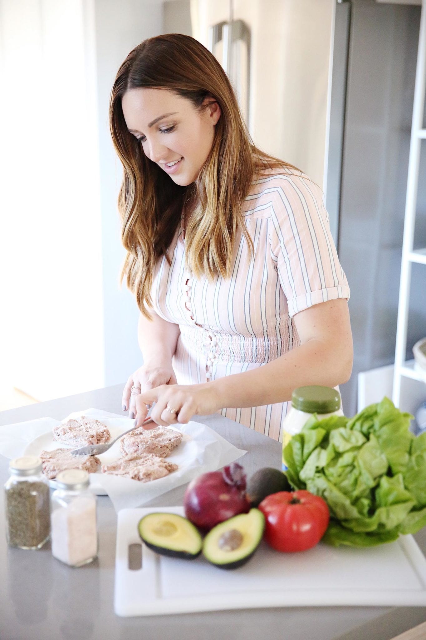 Summer time grilling is going full force at our house! We love firing up the BBQ on any given summer weekend and I’ve been trying out new recipes to mix up some of our BBQ favorites. I’ve been playing with ground turkey a lot in recipes and made some insanely delicious turkey smash burgers this past weekend. I made a variation of this juicy burger recipe with turkey and it’s a healthy mix of protein and flavor for any outdoor BBQ. Check out how I made these below: