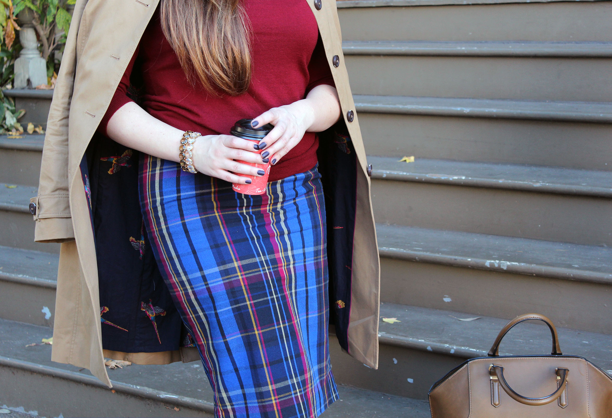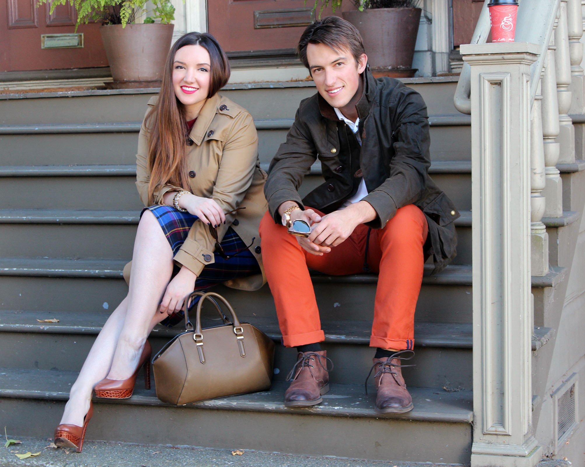 My brother Andrew and I styled two fall coats from Joules and I think its safe to say we have found our favorite pieces of the season. For our weekend activities (which included lunch in San Francisco’s Mission district and birthday present shopping for friends), I chose a classic trench coat because I know its a closet staple piece that will be an element of my fall outfits for years to come. I love the way trench coats can be tied at the waist rather than being properly buckled–its such an easy way to make a more tailored piece more casual. I kept with the classic theme with my plaid pencil skirt and the most perfect. pump. ever. by Elie Tahari.