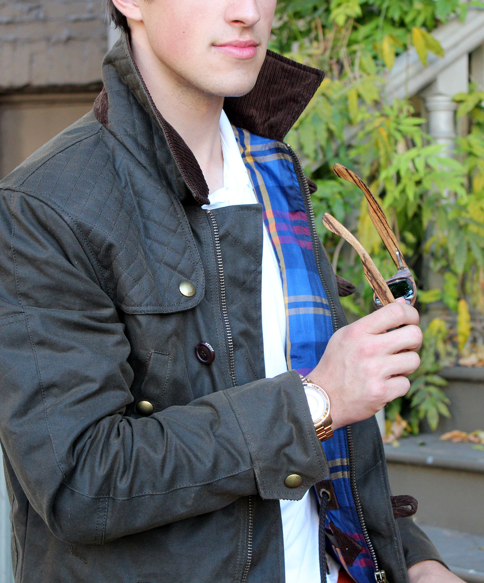 On Andrew – Coat: Joules // Shirt: Lands’ End // Pants: Joules // Boots: Sperry // Sunglasses: Wooed // Watch: Michael Kors