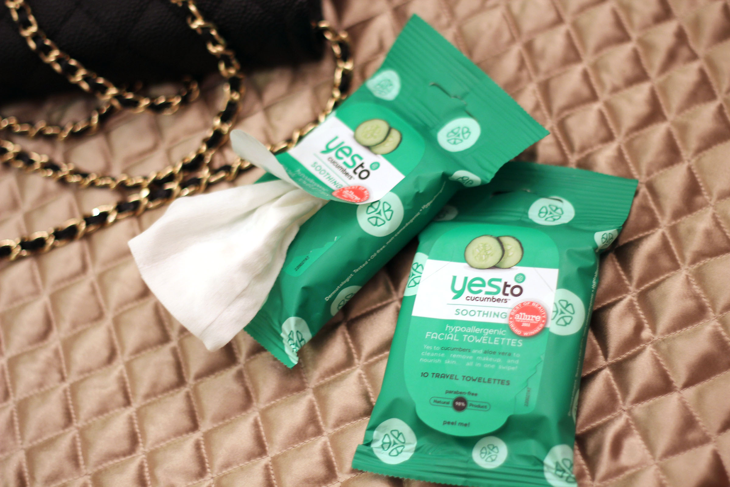 On the topic of skincare, I’ve been keeping these Yes to Cucumbers facial wipes in my bag so that after a long day I can wipe off my makeup and feel fresh. I’ve been known to use these facial towelettes while driving sitting in traffic, in the back of a taxi, or as a refreshing way to wipe down my face at the gym. Love having little travel size facials in my purse!