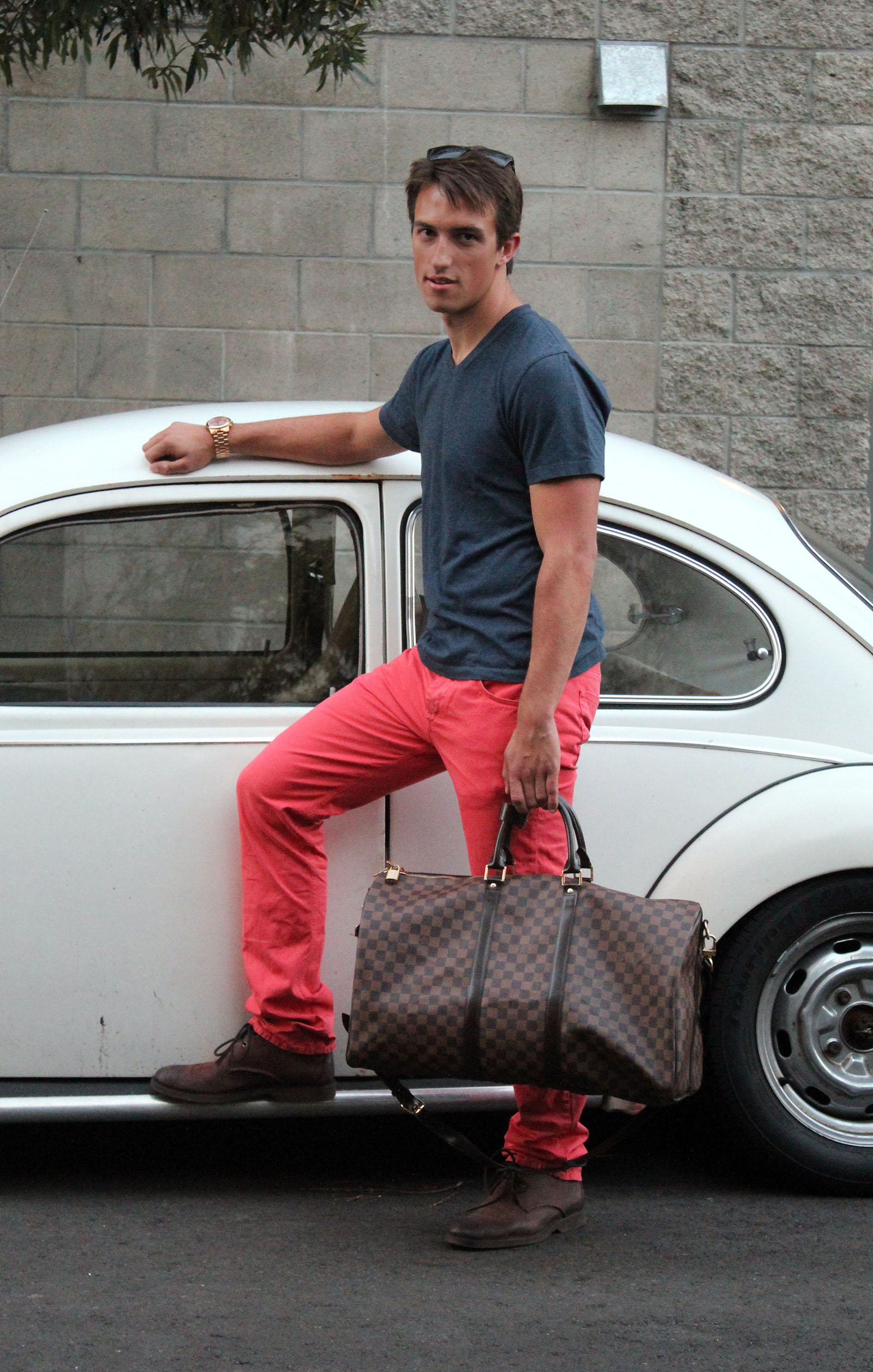 On Andrew – Shirt: Lands’ End // Jeans: Rag & Bone // Boots: Sperry c/o Watch: Michael Kors // Duffle: Louis Vuitton