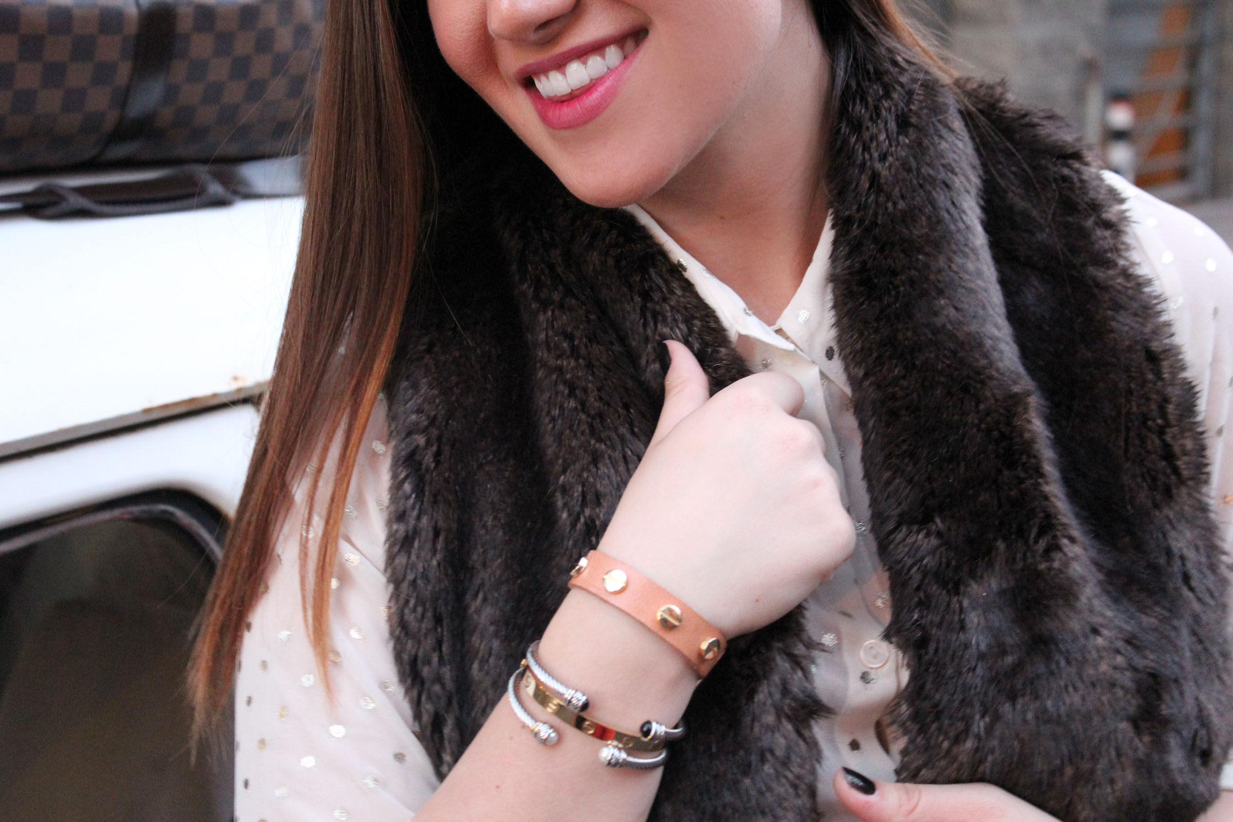 On Jennifer – Shirt: Forever 21, similar here // Pants: JCrew // Vest: TART Collections c/o // Boots: Sperry c/o // Clutch: Louis Vuitton