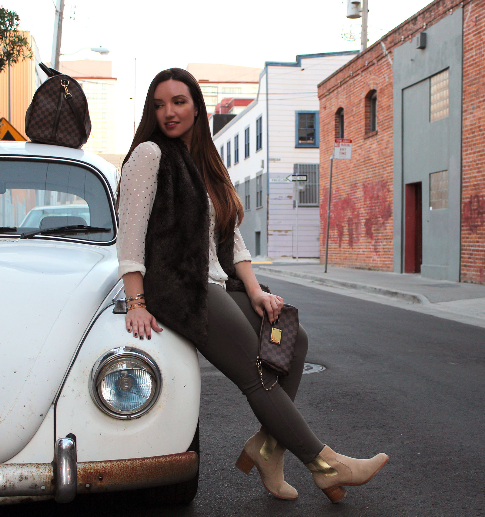 I’m not even sure if we should call this a road trip, but I have so much fun driving with my brother that any car ride longer than thirty minutes feels like a road trip. When he picked me up the other day to take us to our parent’s house, naturally I suggested we shoot outfit photos with an old VW bug instead of getting on the road…priorities, right?