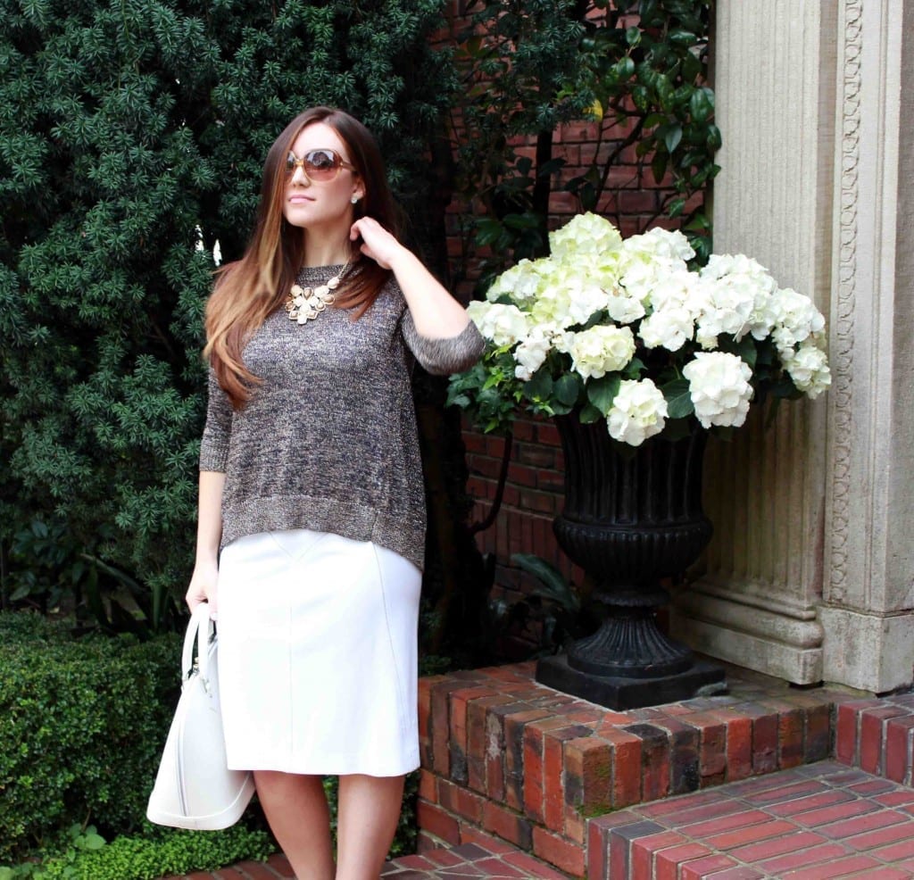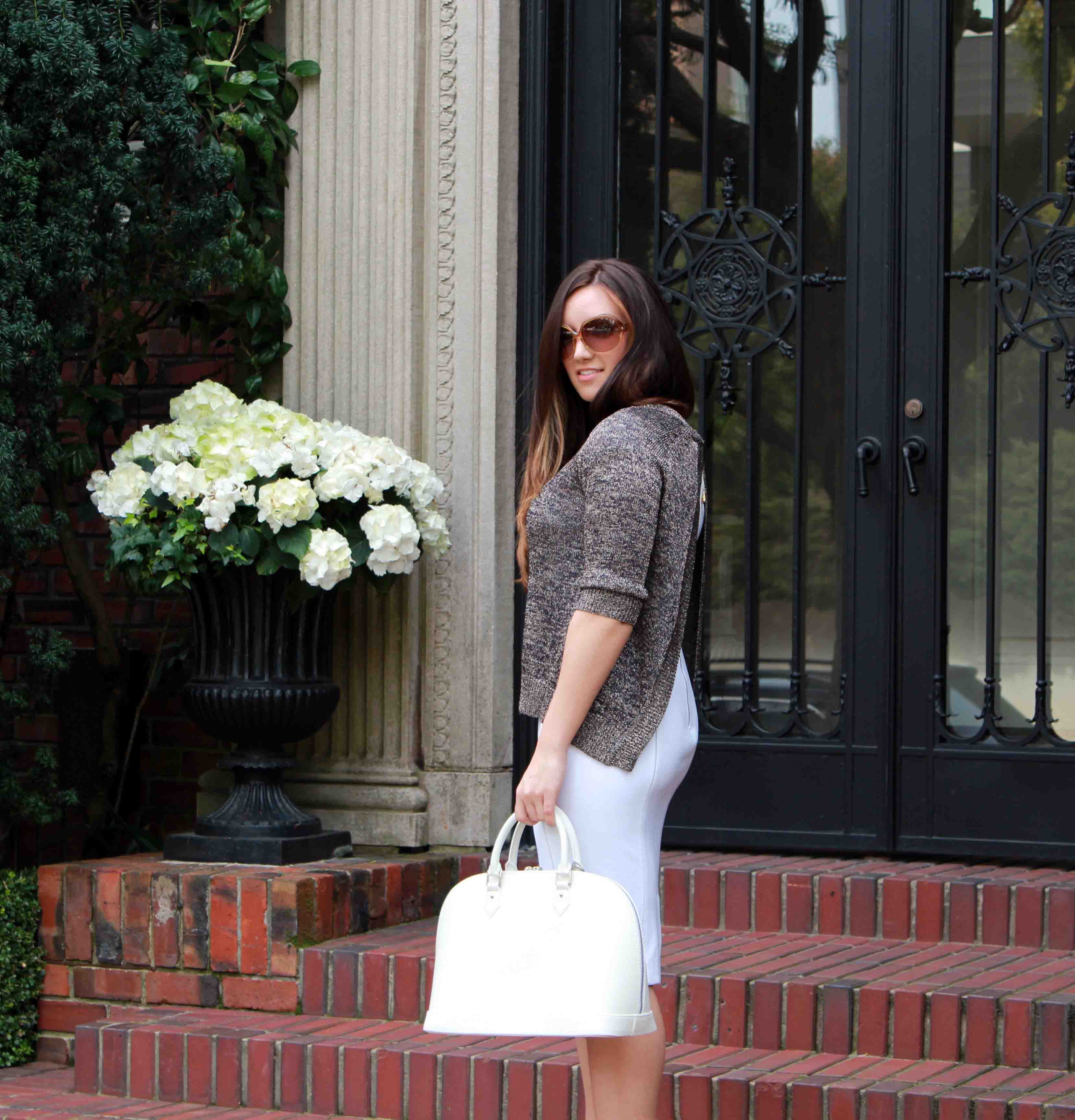 I particularly liked Gwyneth’s white gown look since it slightly resembled my favorite Dolce & Gabbana dress that I was wearing earlier this week.  This dress is more of a night-out kind of piece so I made it more day time-friendly with a metallic TopShop sweater with the most unique open back detail.